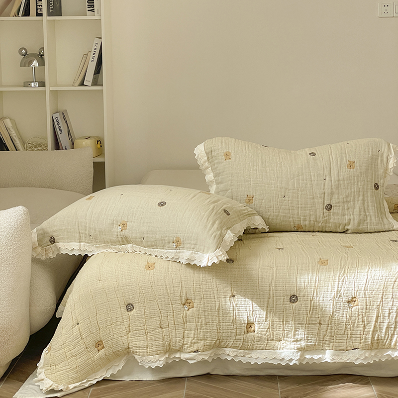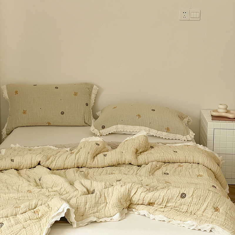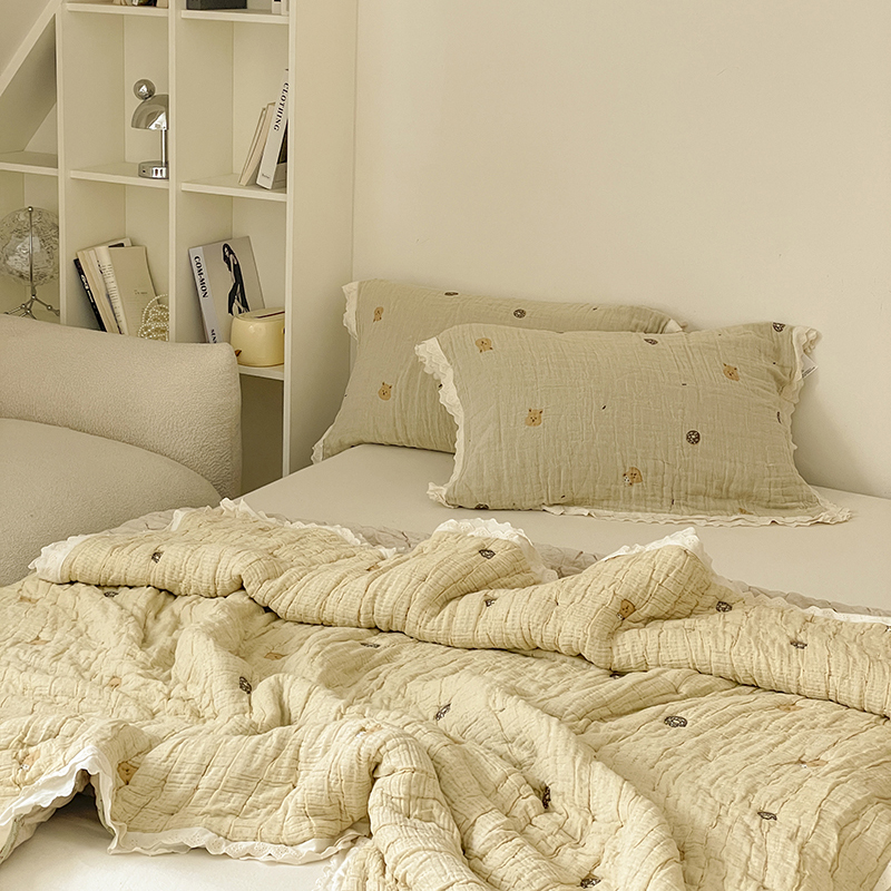 (总)麻依 2025新款韩国清新全棉纱布床盖三件套,憨憨熊,彩色南瓜,车厘子,两颗草莓,奶盖KT,奶油波点-灰,奶油彩点,水蓝KT,水墨花,丝带,桃心-米白,小猫鱼