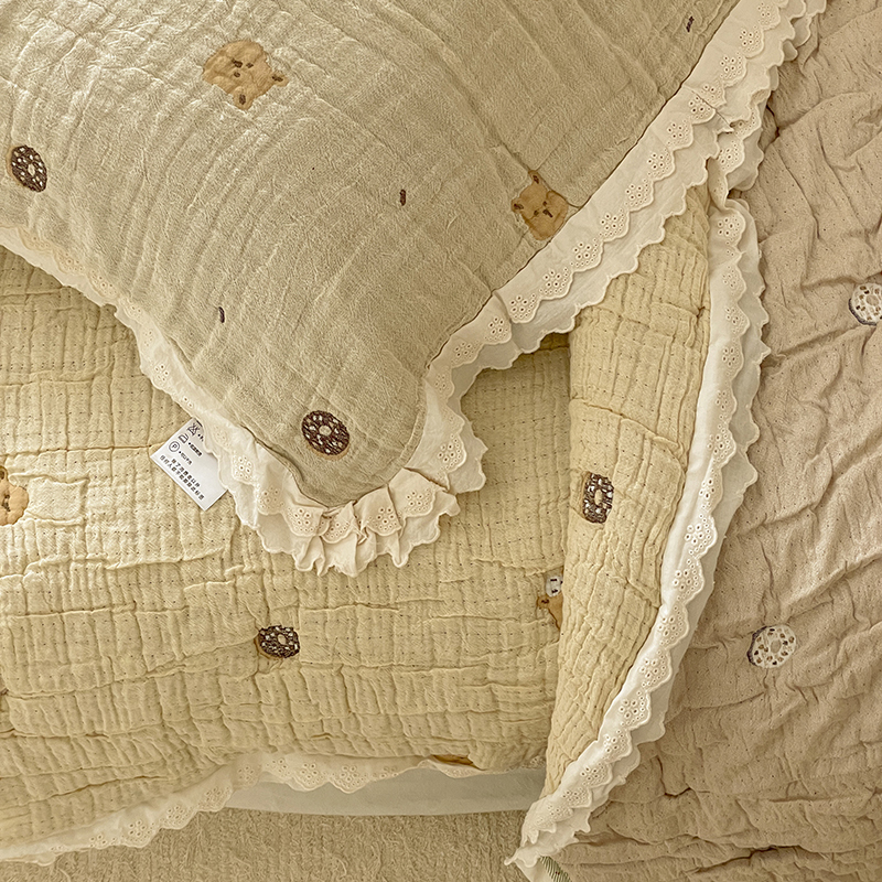 (总)麻依 2025新款棉花糖枕巾全棉四层纱布双层花边,抱抱熊,点点-灰,点点-米白,花影-粉,花影-米白,墨心,奶油草莓,帕帕熊,牵手小熊,生日腊肠狗,甜甜圈小熊,小蝴蝶结,小南瓜,小柿子,樱桃香