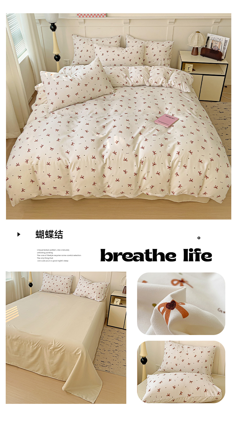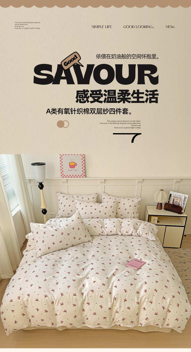 当前位置: 91家纺网 > 商品网购 > 床品套件 > 四件套 > 针织棉四件套 > 妖妖家纺 2025新款有氧针织棉双层纱四件套 蝴蝶结