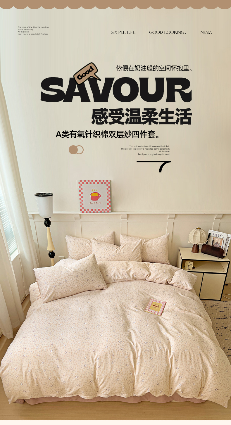 当前位置: 91家纺网 > 商品网购 > 床品套件 > 四件套 > 针织棉四件套 > 妖妖家纺 2025新款有氧针织棉双层纱四件套 页旋