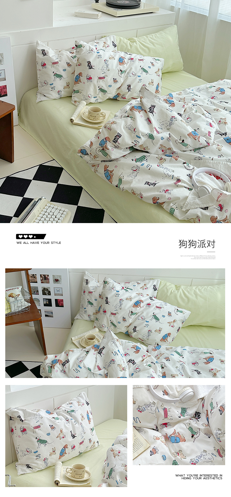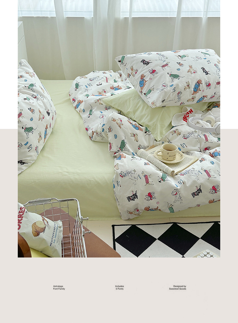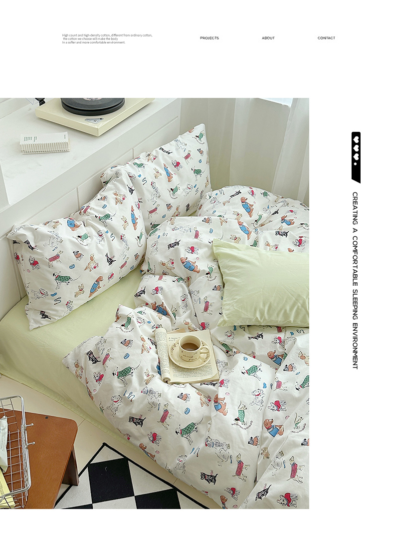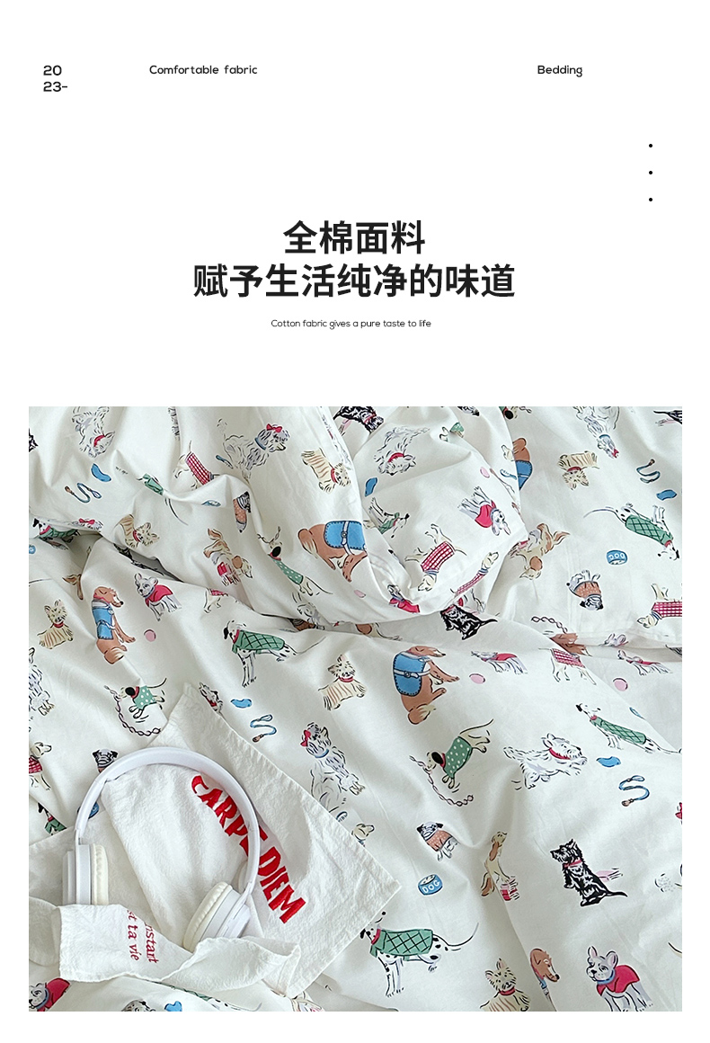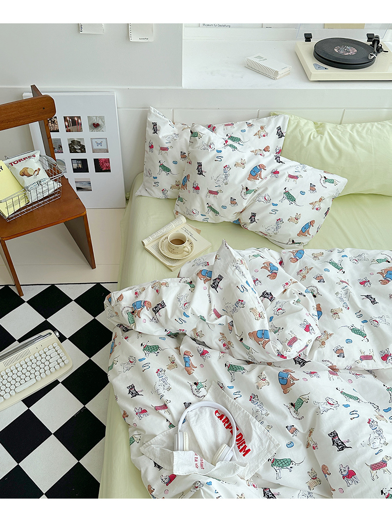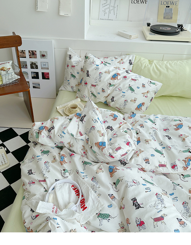 当前位置: 91家纺网 > 商品网购 > 床品套件 > 四件套 > 全棉普通四件套 > 尺素2025年韩国ins风系列五 狗狗派对