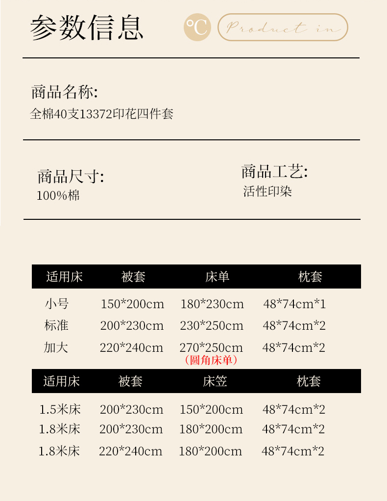 1.8m被套加大床笠款四件套 | ¥140.00 |