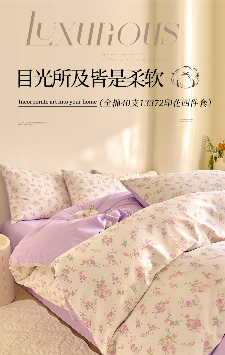 当前位置: 91家纺网 > 商品网购 > 床品套件 > 四件套 > 全棉普通四件套 > DoDo 兜兜 【 可定制尺寸】2026新款全棉40支13372印花四件套 伊人