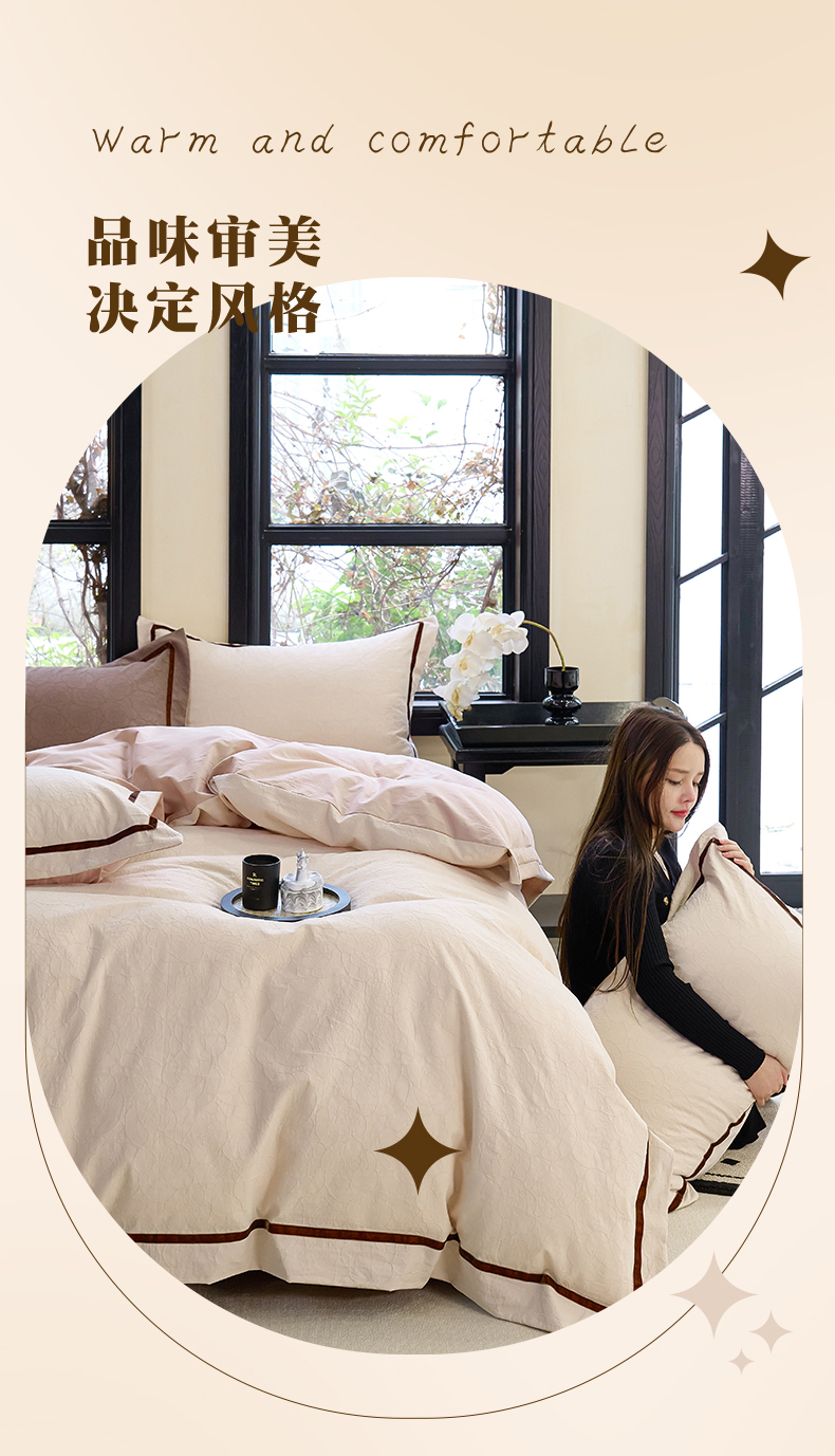 当前位置: 91家纺网 > 商品网购 > 床品套件 > 四件套 > 提花四件套 > (总) 久典家居 2025新款三层纱浮雕大提花织带贴边款四件套买家秀找客服
