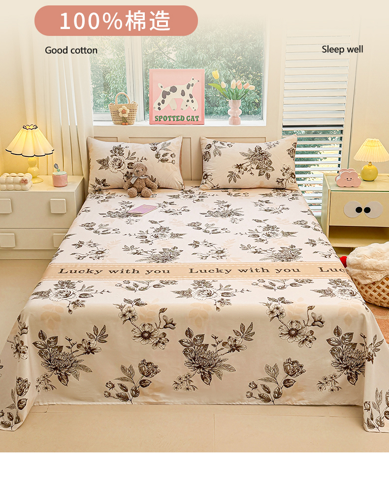 当前位置: 91家纺网 > 商品网购 > 床上用品 > 床单 > 雯豆2025春夏新款全棉床单三件套纯棉床罩小清新印花床单 全棉床单-蔓秋