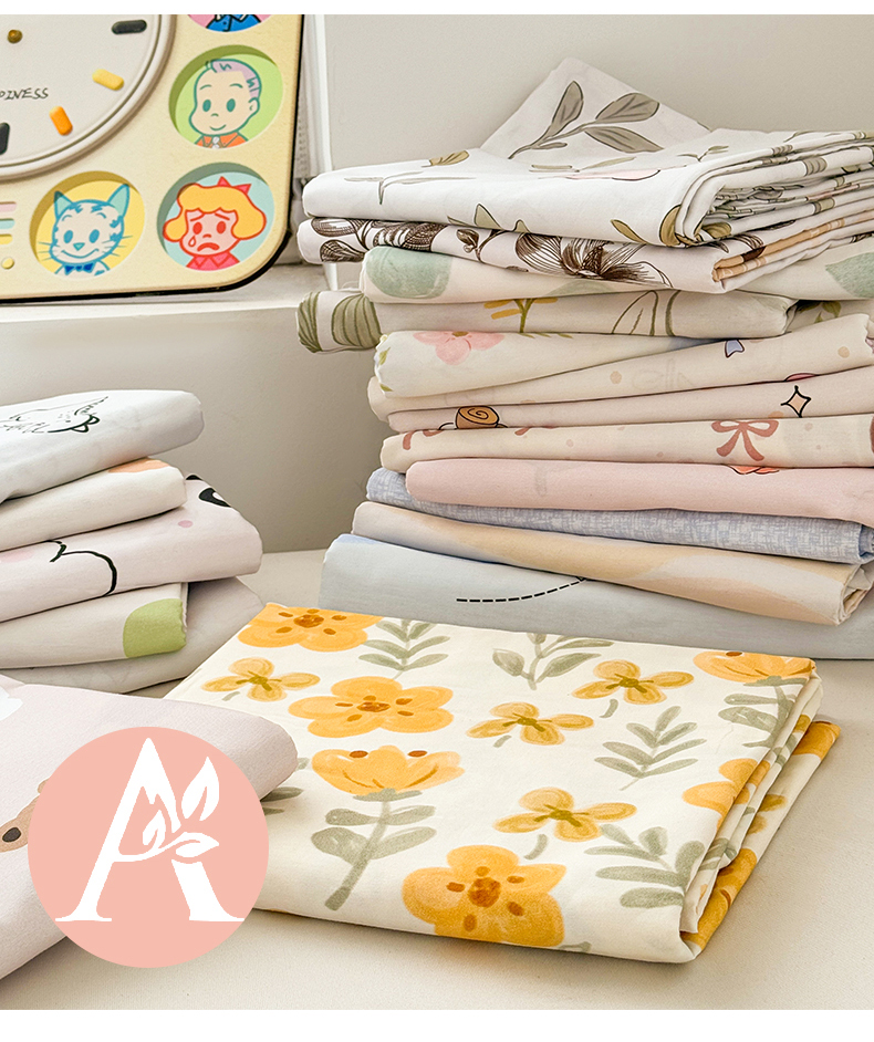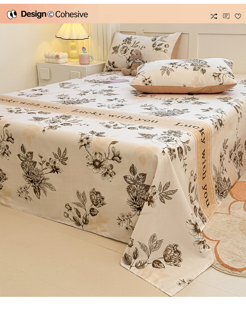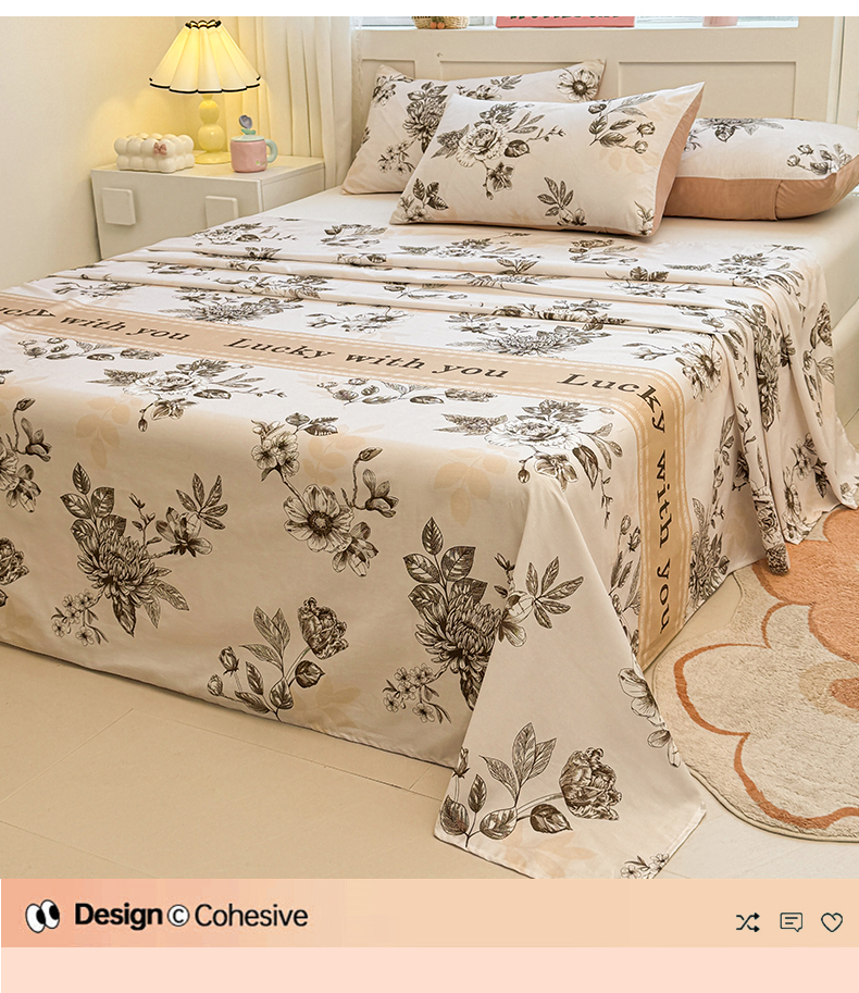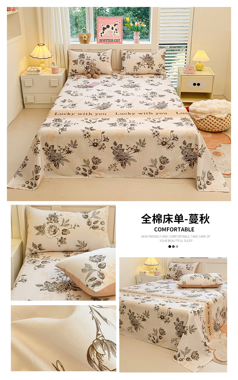 • 91家纺网 家纺一手货源 找家纺 雯豆2025春夏新款全棉床单三件套纯棉床罩小清新印花床单 全棉床单-蔓秋
