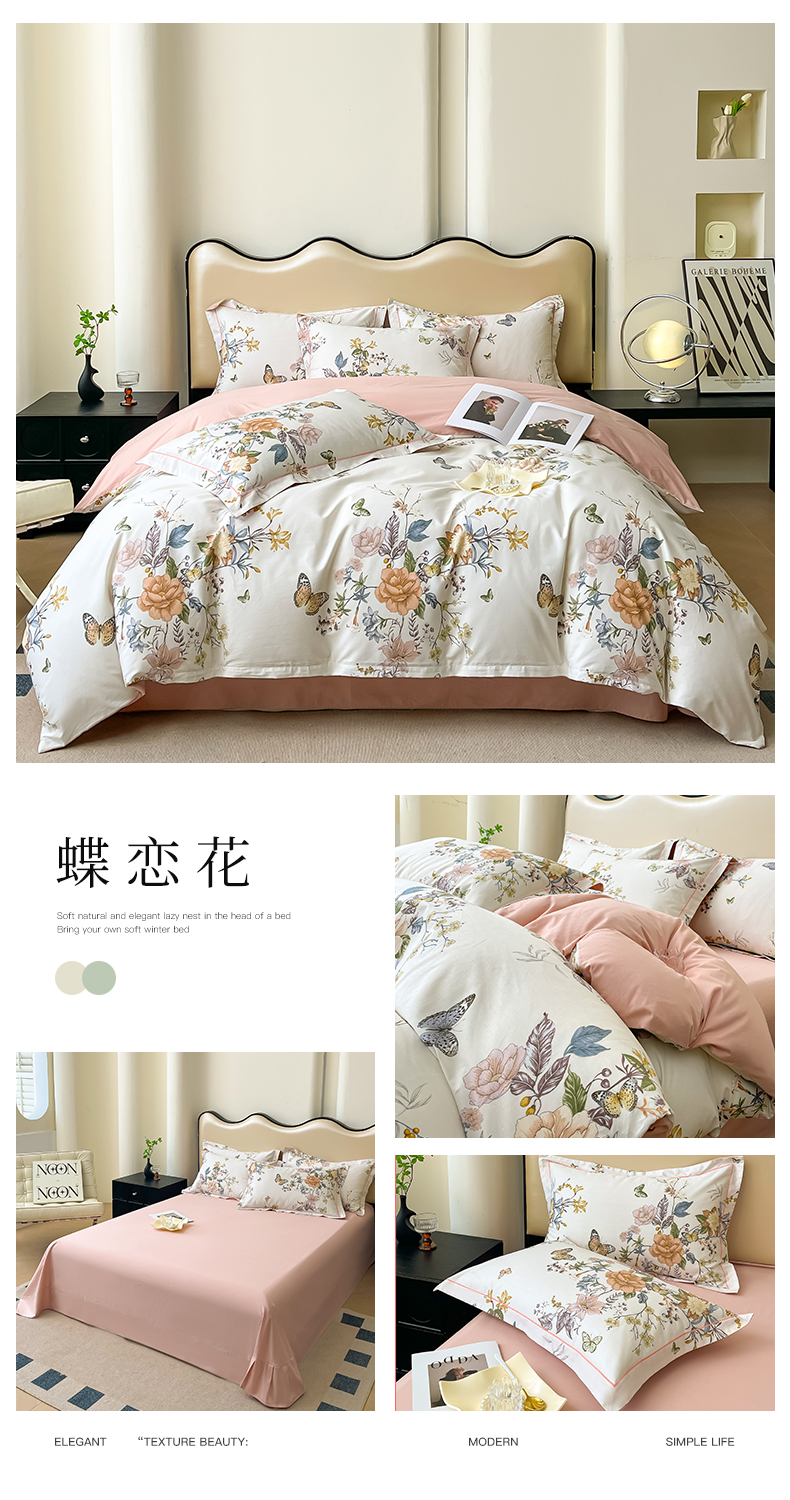 商品名称:帛美 2025新款13376全棉纯棉印花四件套-提供买家秀 蝶恋花