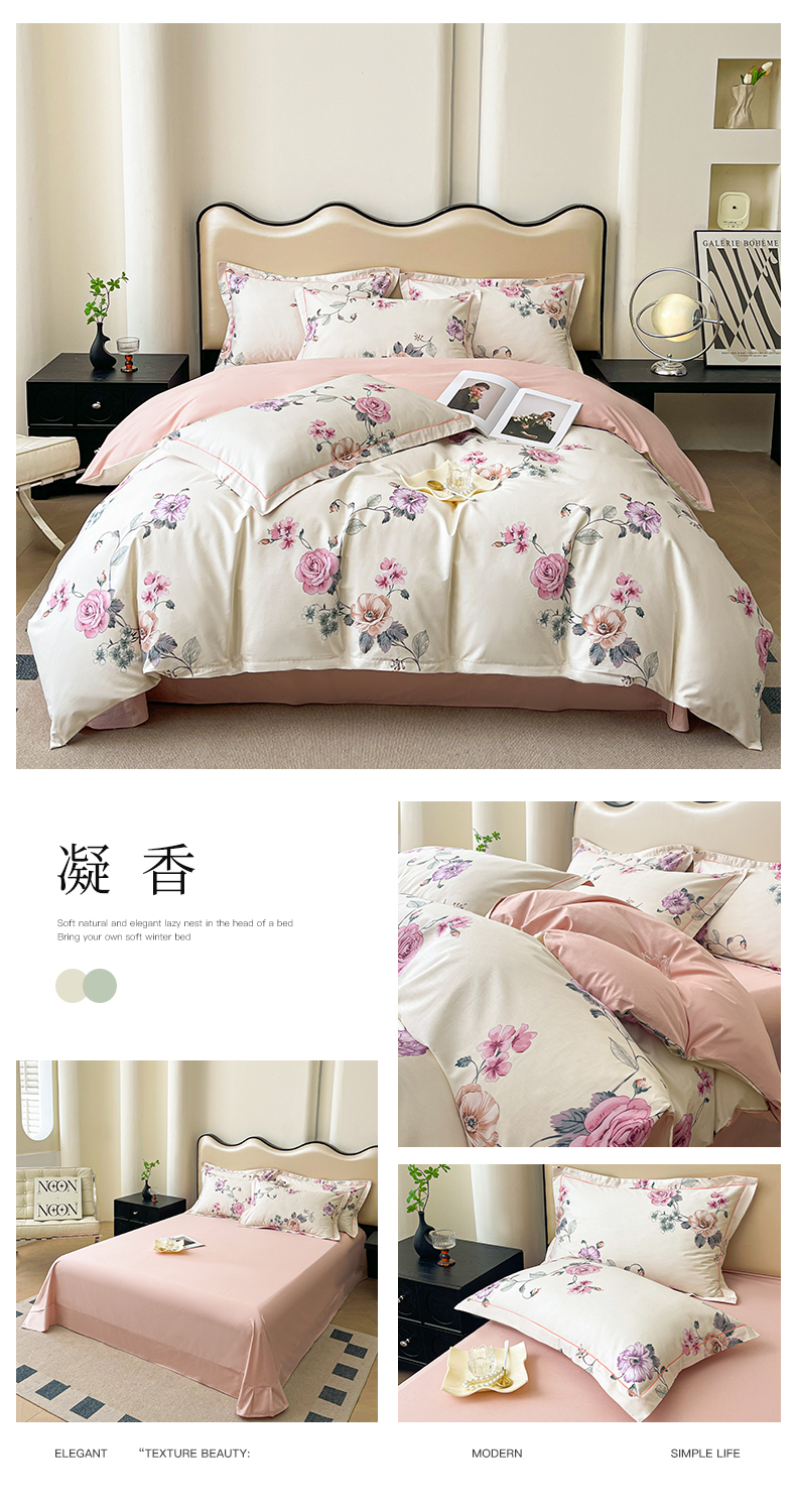 商品名称:帛美 2025新款13376全棉纯棉印花四件套-提供买家秀 凝香