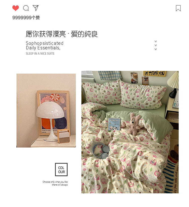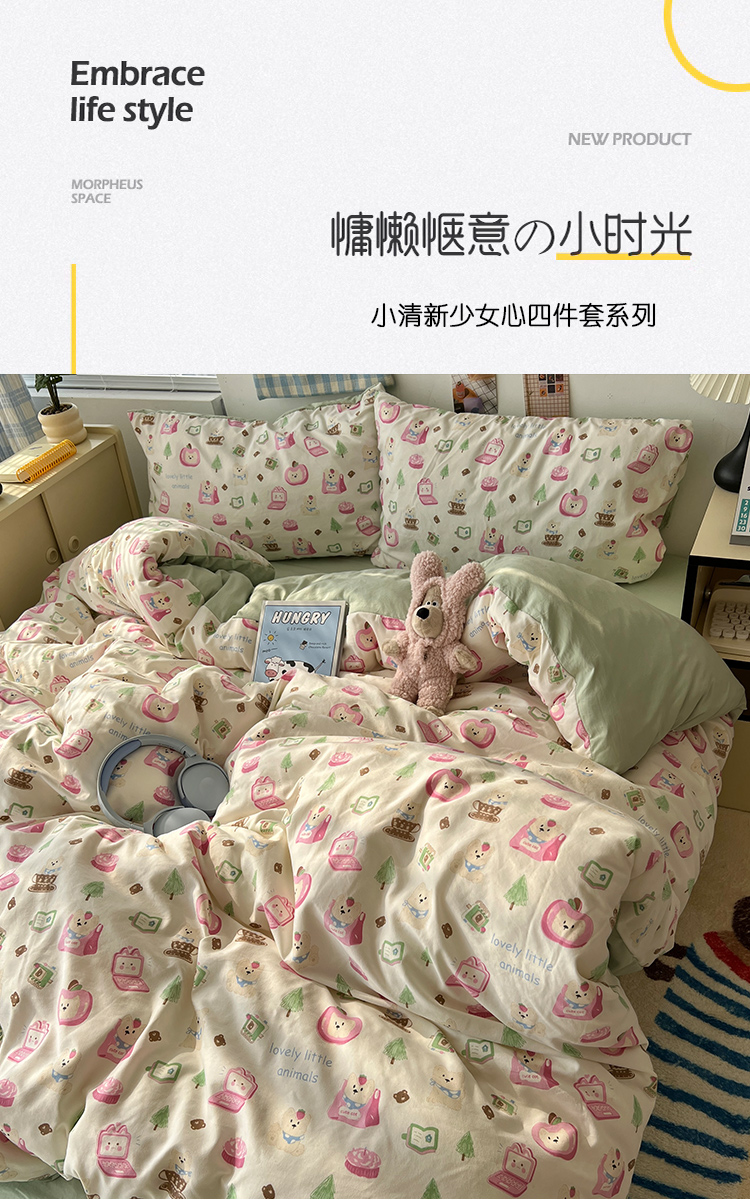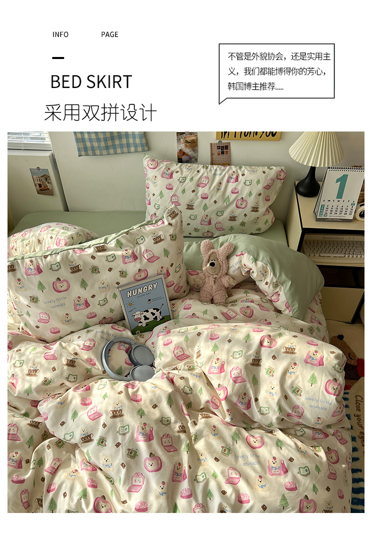 当前位置: 91家纺网 > 商品网购 > 床品套件 > 四件套 > 其它四件套 > 原素 2025软绵绵的双拼印花水洗棉四件套 科技萌宠