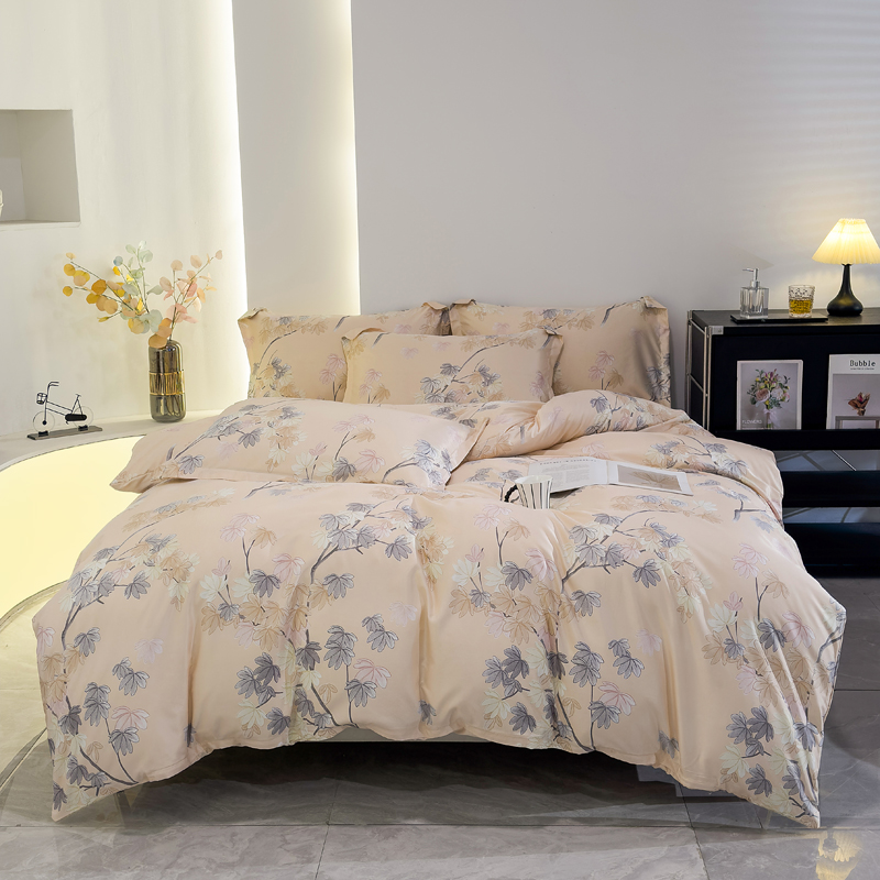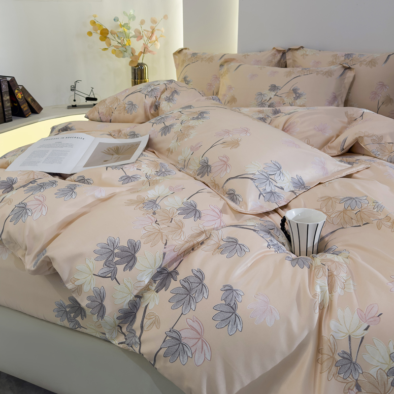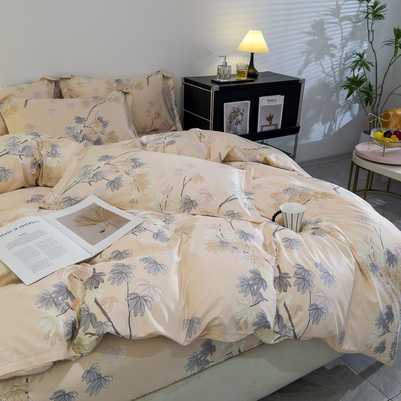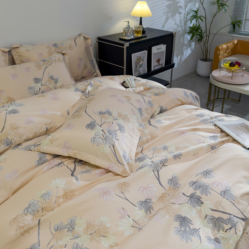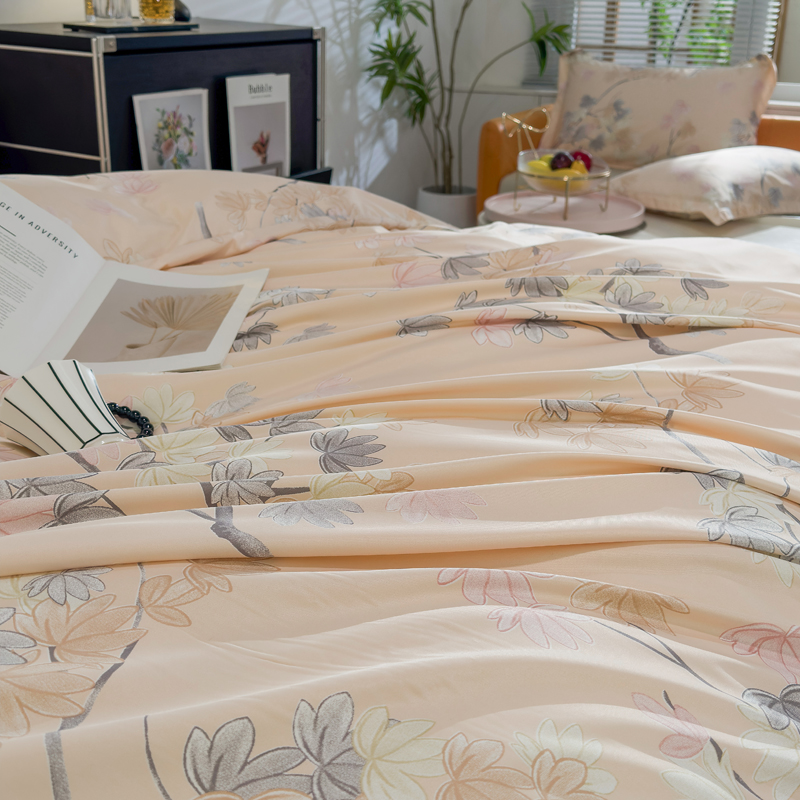 耀悦家纺 2025新款水洗真丝四件套简约印花小清新欧式ins新中式冰丝四件套 杏花微雨