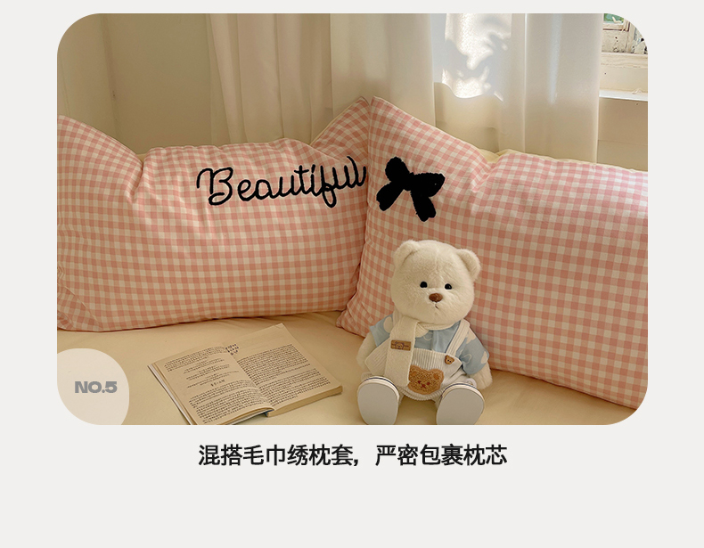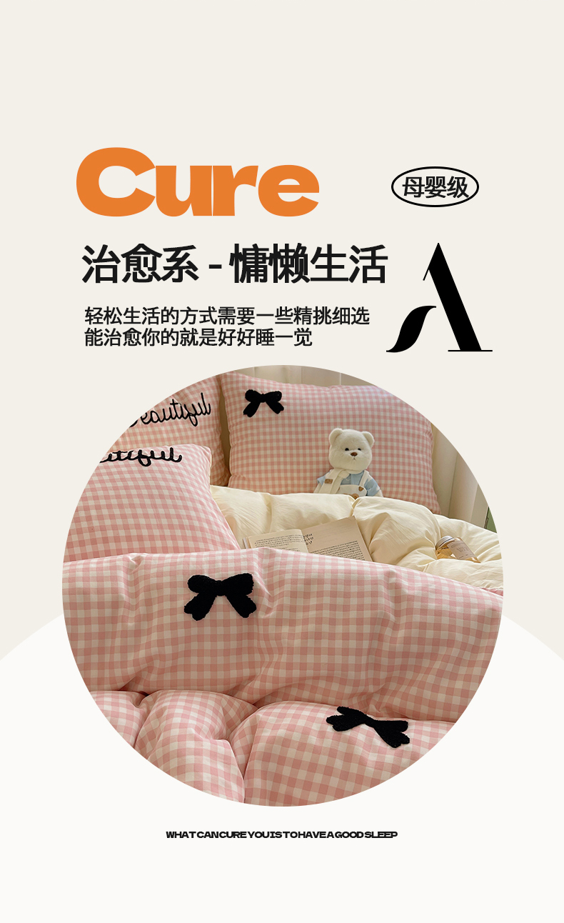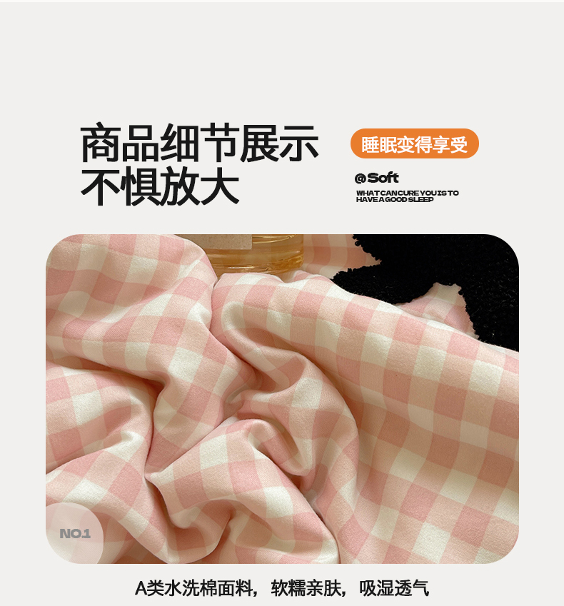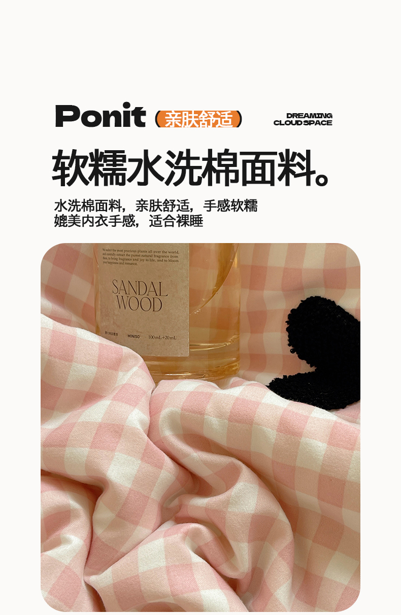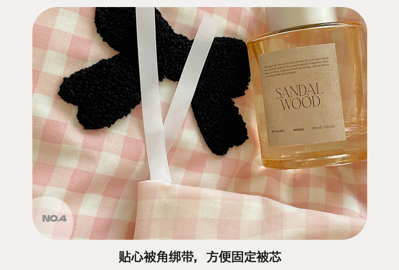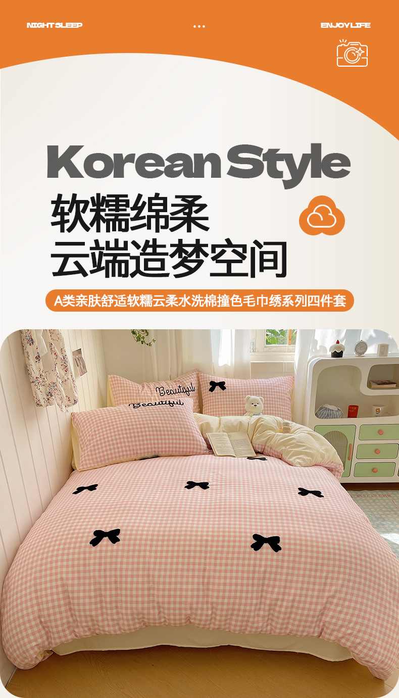 当前位置: 91家纺网 > 商品网购 > 床品套件 > 四件套 > 水洗棉四件套 > 桃心家居 2025新款A类亲肤舒适软糯云柔水洗棉奶油格子撞色毛巾绣猫咪蝴蝶结水洗棉系列四件套 云柔水洗棉-少女蝴蝶结粉黑