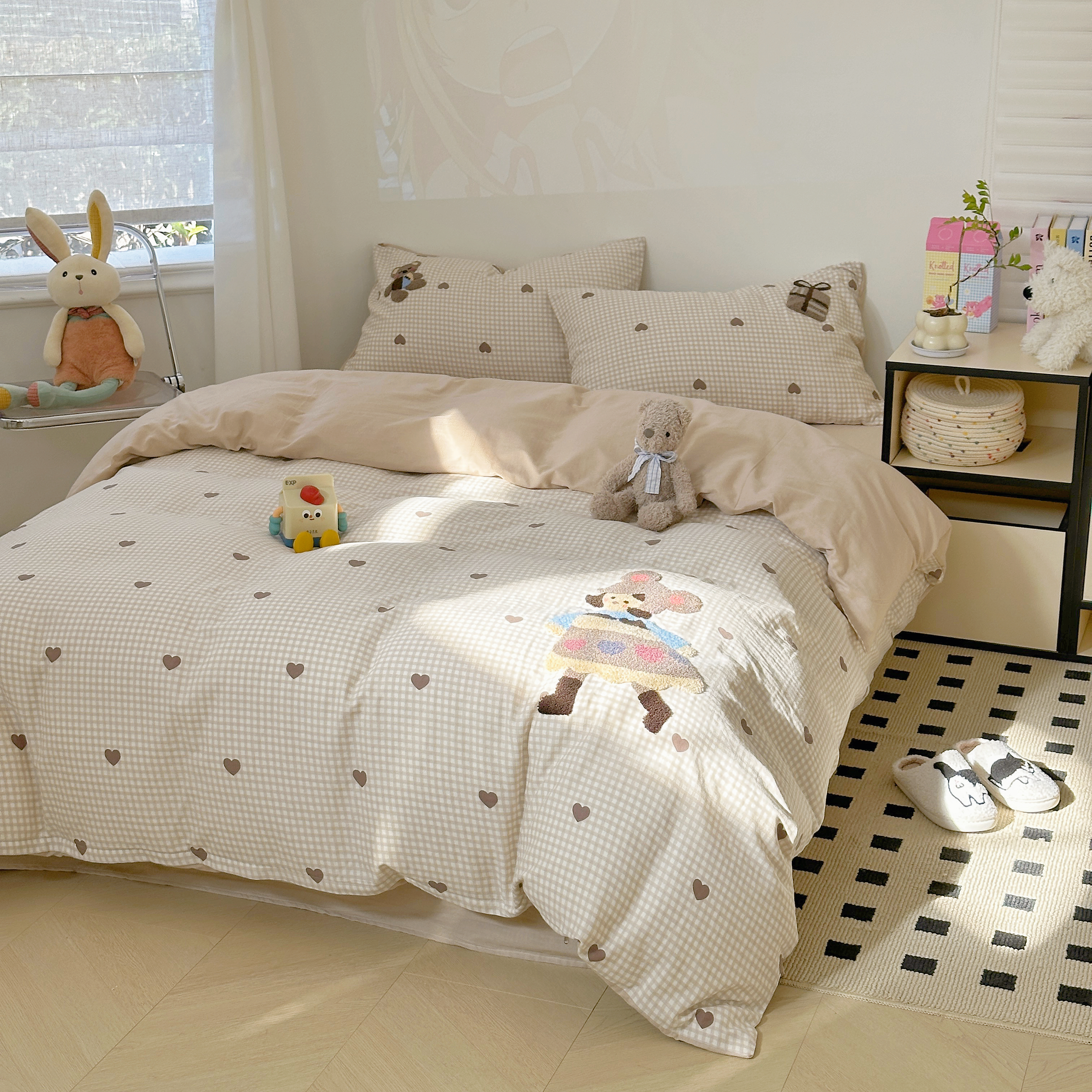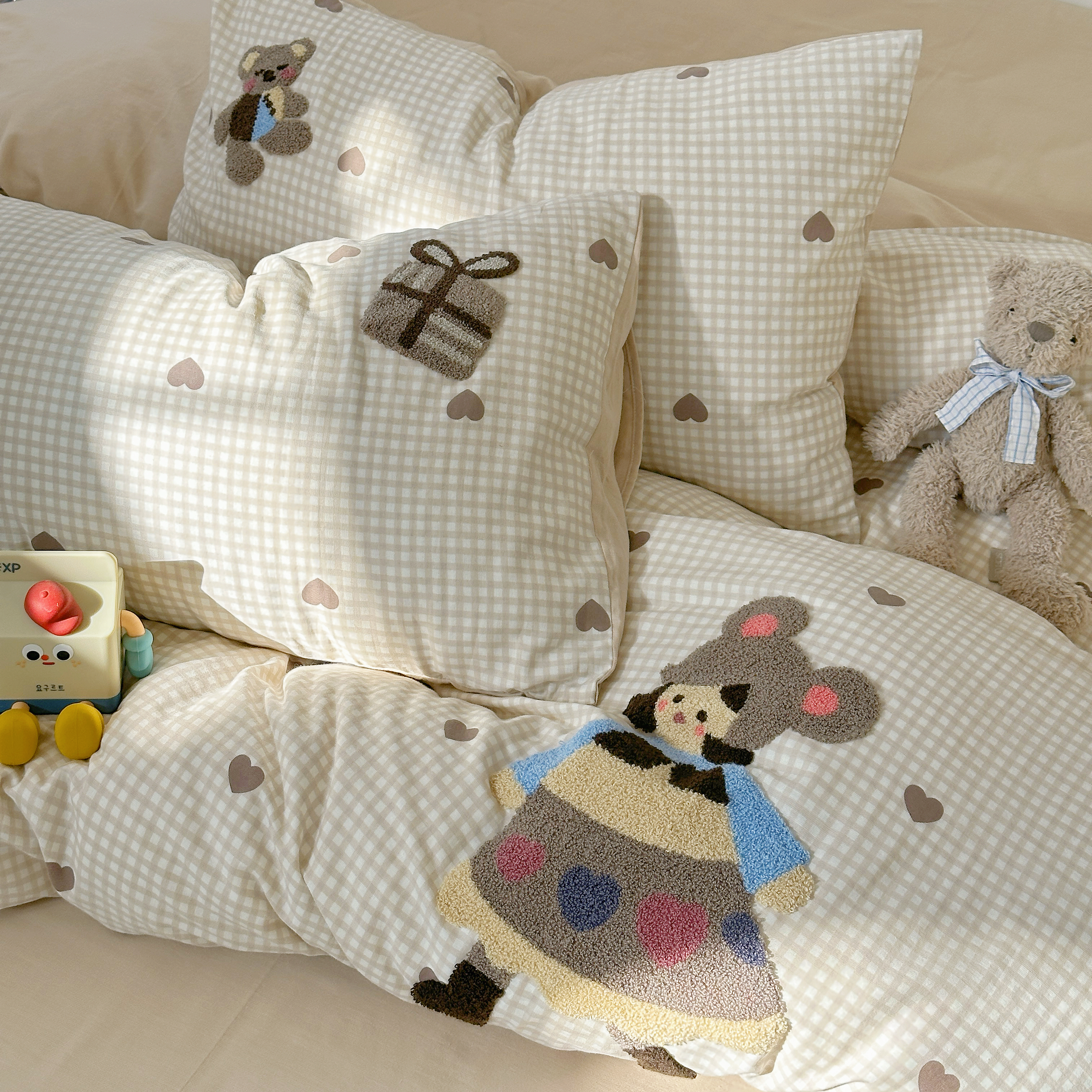 珺柔家纺 2025新款全棉双层纱毛巾绣四件套 玩偶女孩