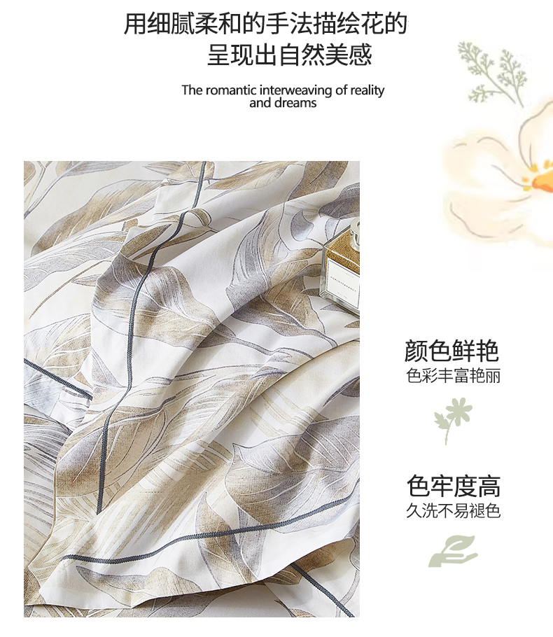 商品名称:曼秀琳 2025新款铂金棉数码印花四件套(全棉133*76) 神秘雨林-驼