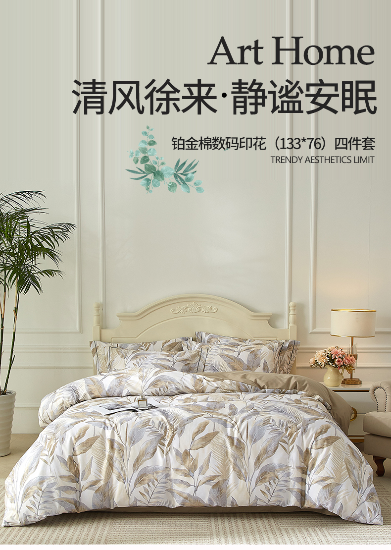 曼秀琳 2025新款铂金棉数码印花四件套(全棉133*76) 神秘雨林-驼