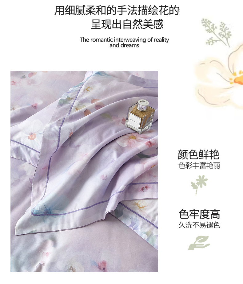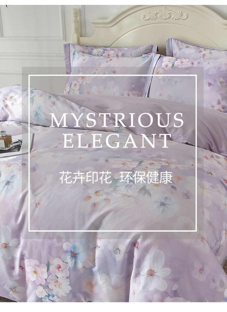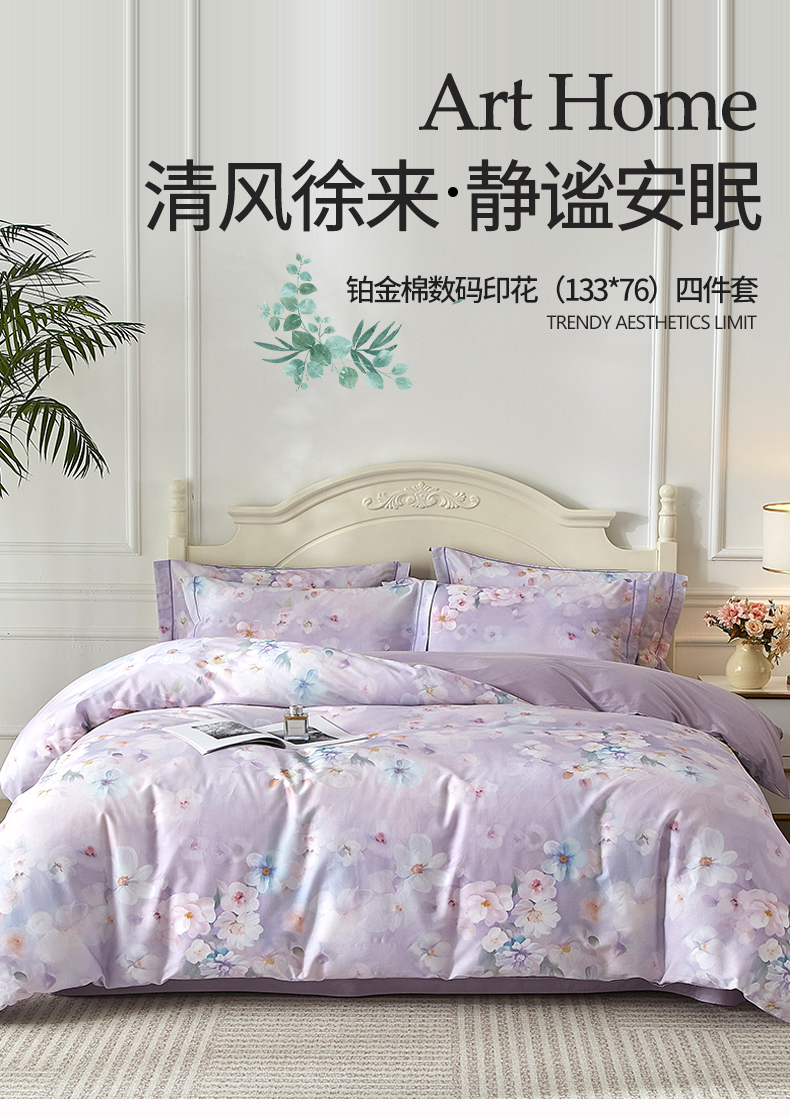 商品名称:曼秀琳 2025新款铂金棉数码印花四件套(全棉133*76) 水中月-紫