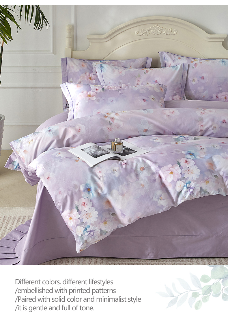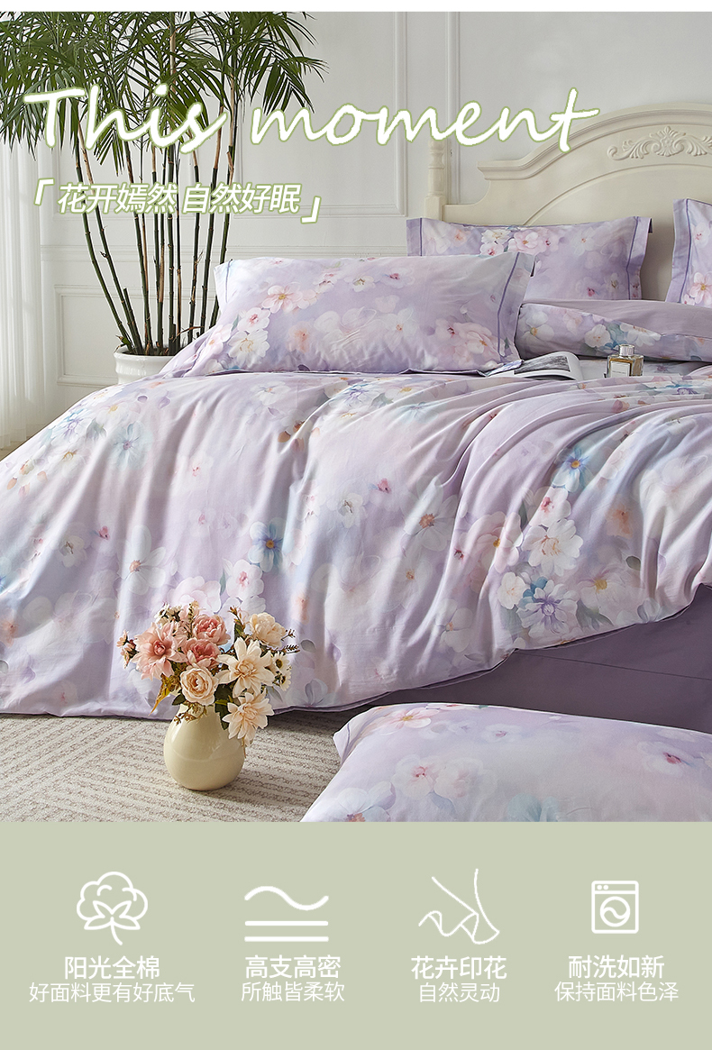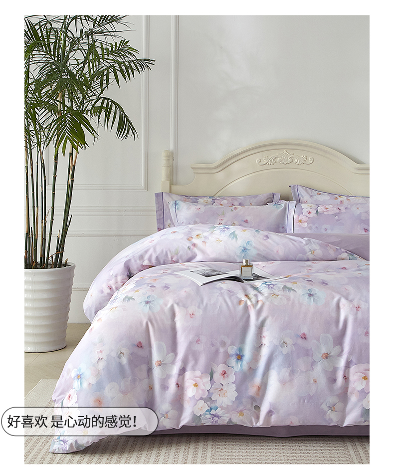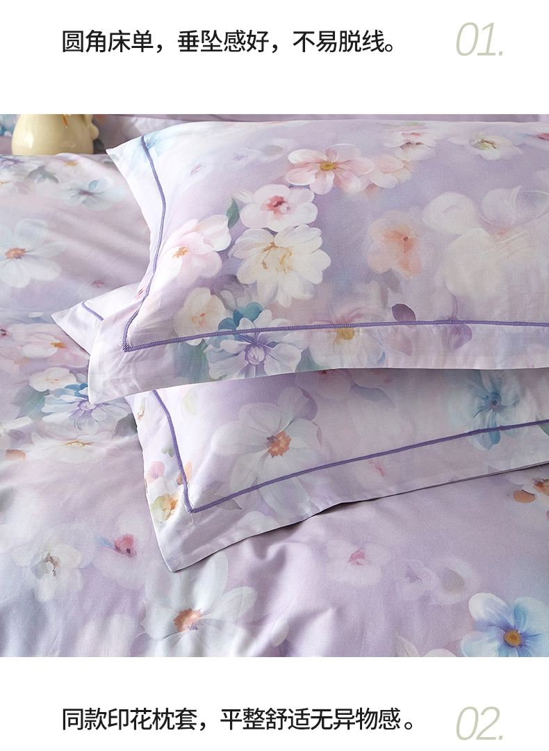 曼秀琳 2025新款铂金棉数码印花四件套(全棉133*76) 水中月-紫