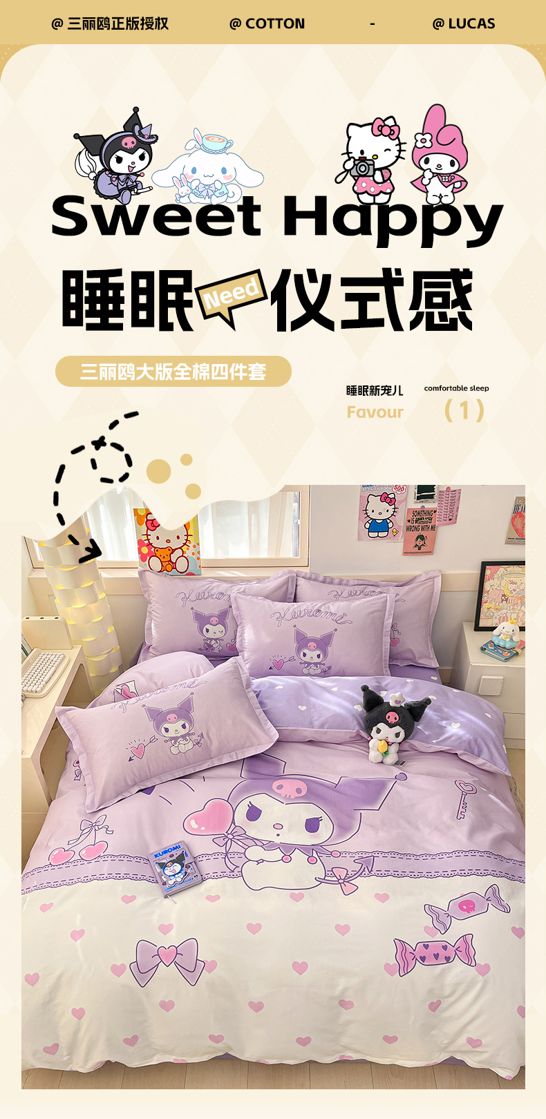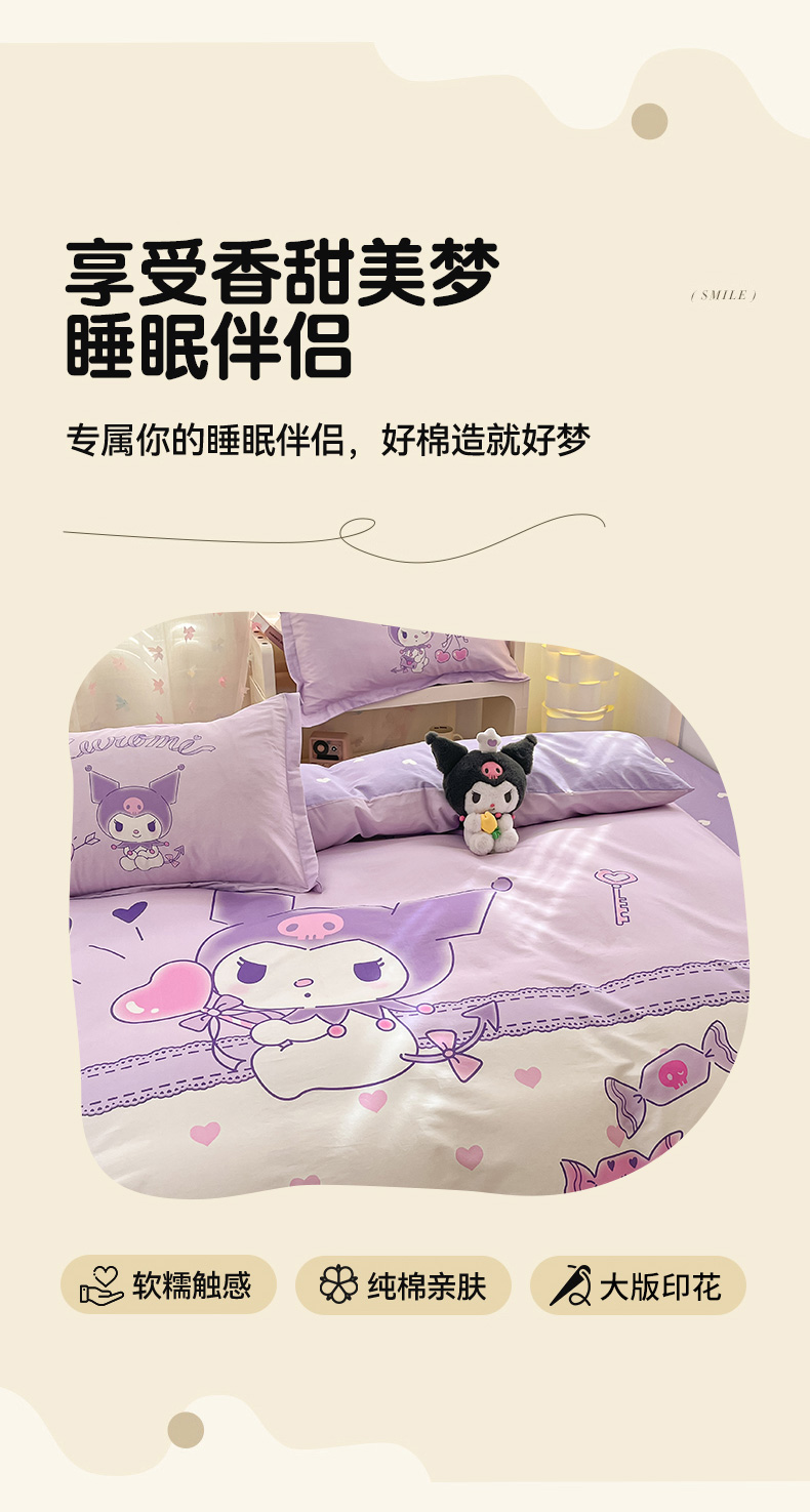 当前位置: 91家纺网 > 商品网购 > 床品套件 > 四件套 > 全棉普通四件套 > 博雅 2025新款三丽鸥大版印花全棉四件套专版花型 全棉大版(升级款信封枕)气球库洛米