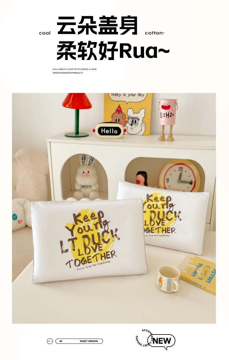 • 91家纺网 家纺一手货源 找家纺 圣比熊 2025新款正版授权控价19元起 全棉枕套卡通枕芯套枕头内胆套儿童抱枕套 字母鸭
