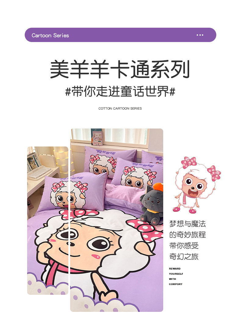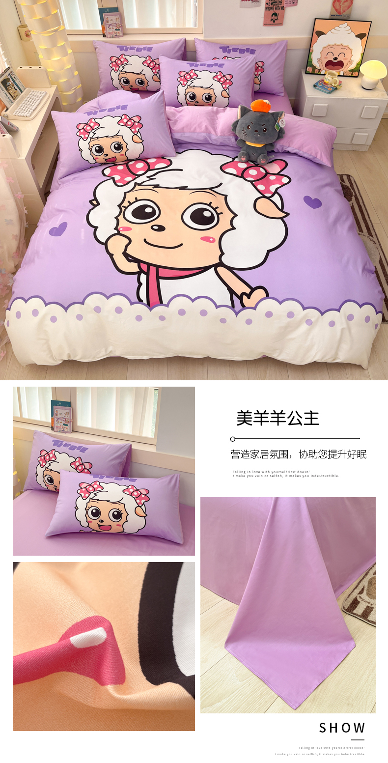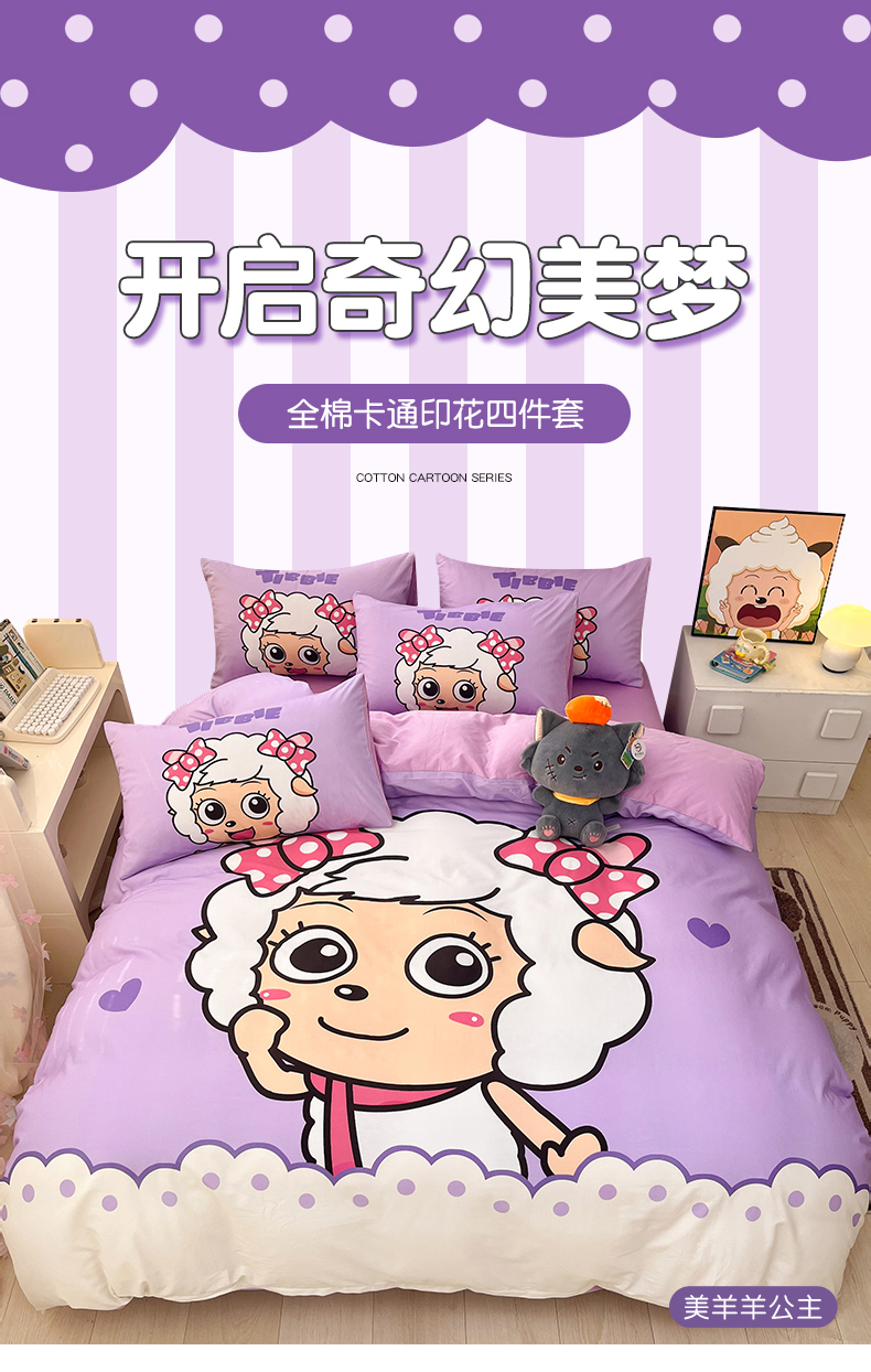 当前位置: 91家纺网 > 商品网购 > 床品套件 > 四件套 > 全棉普通四件套 > 金爱家 2025新款喜洋洋纯棉数码印花系列四件套 美羊羊公主