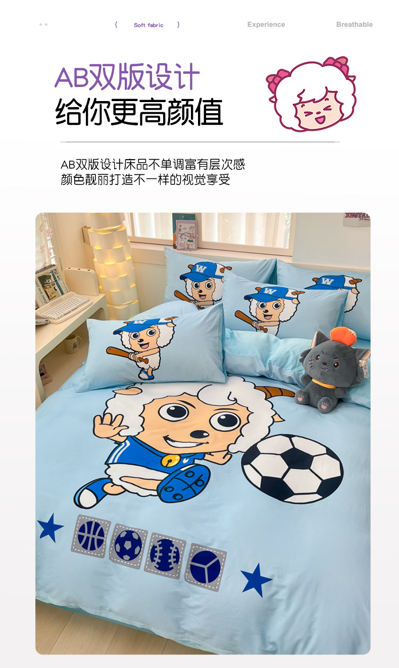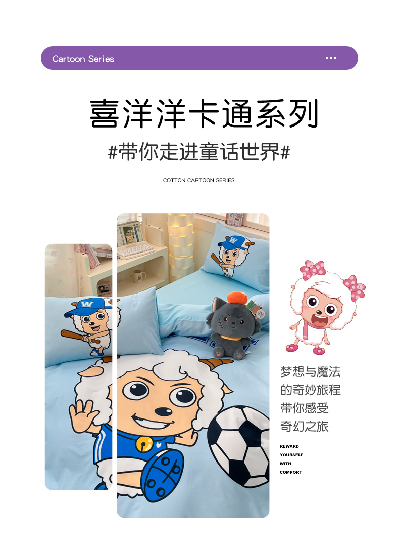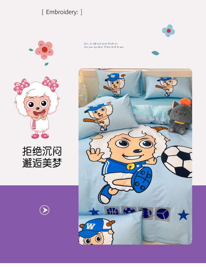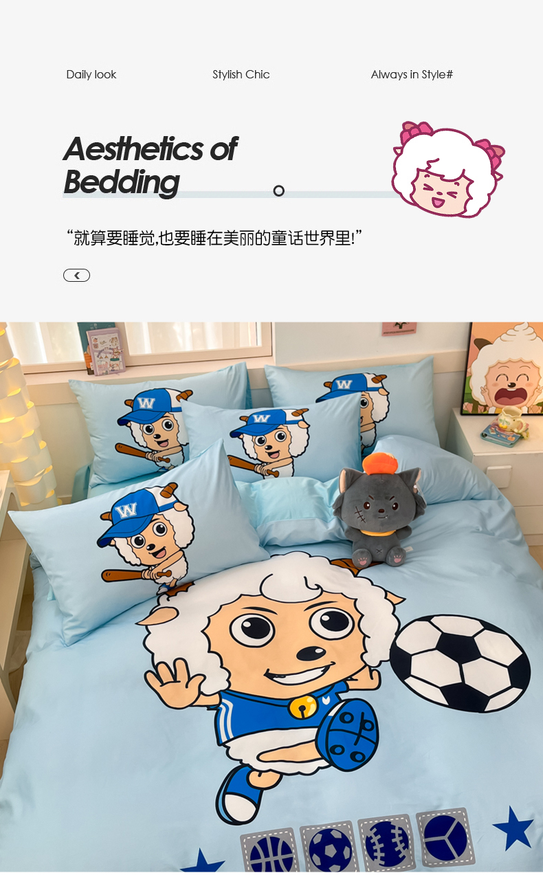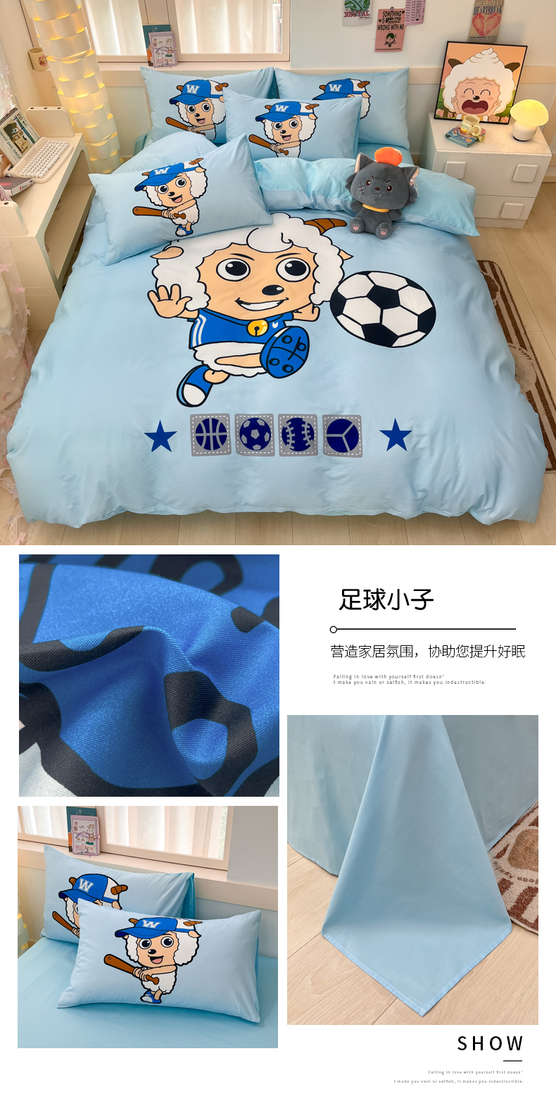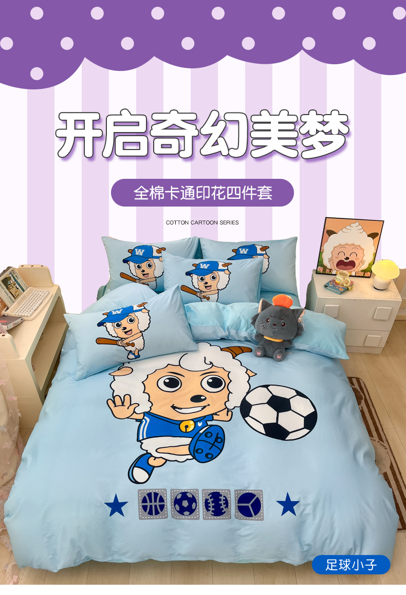 当前位置: 91家纺网 > 商品网购 > 床品套件 > 四件套 > 全棉普通四件套 > 金爱家 2025新款喜洋洋纯棉数码印花系列四件套 足球小子