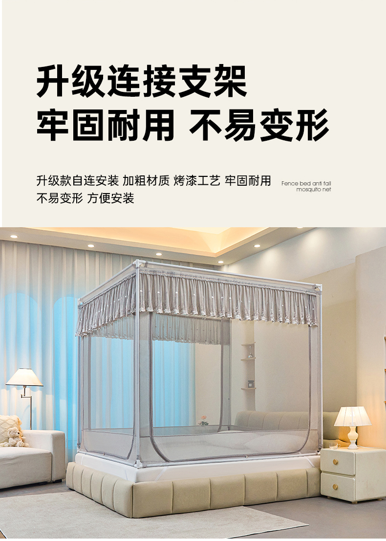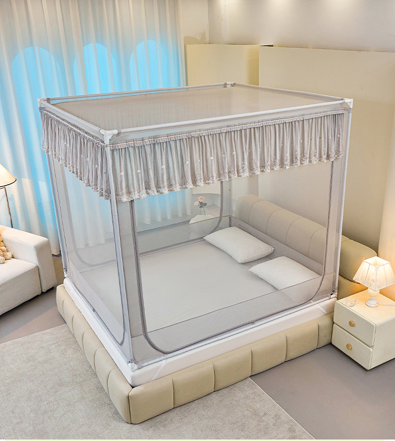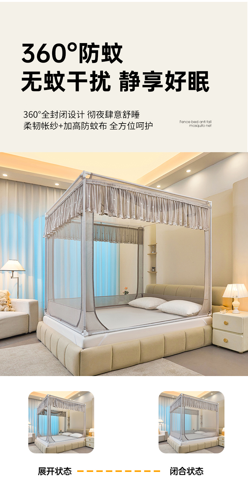 (总)梦尔佳蚊帐 2025新款双层花边床笠式三开门蚊帐-858怜香惜玉系列,优雅黄,富贵白,高级灰,温柔玉,清爽蓝