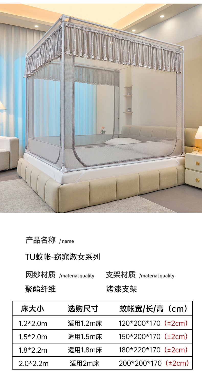 (总)梦尔佳 2025新款落地款蚊帐-怜香惜玉系列860型号,洁白,藕玉,米黄,五彩缤纷:蓝灰,淡蓝,五彩缤纷:白