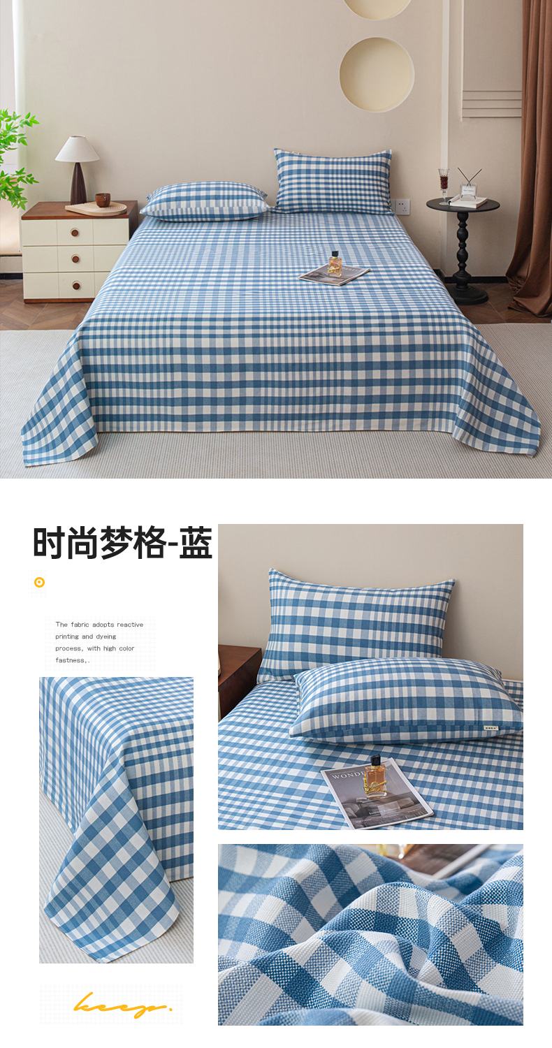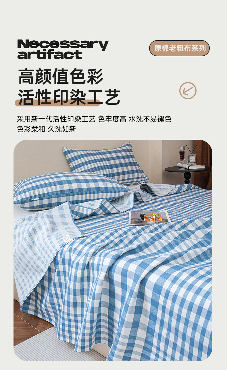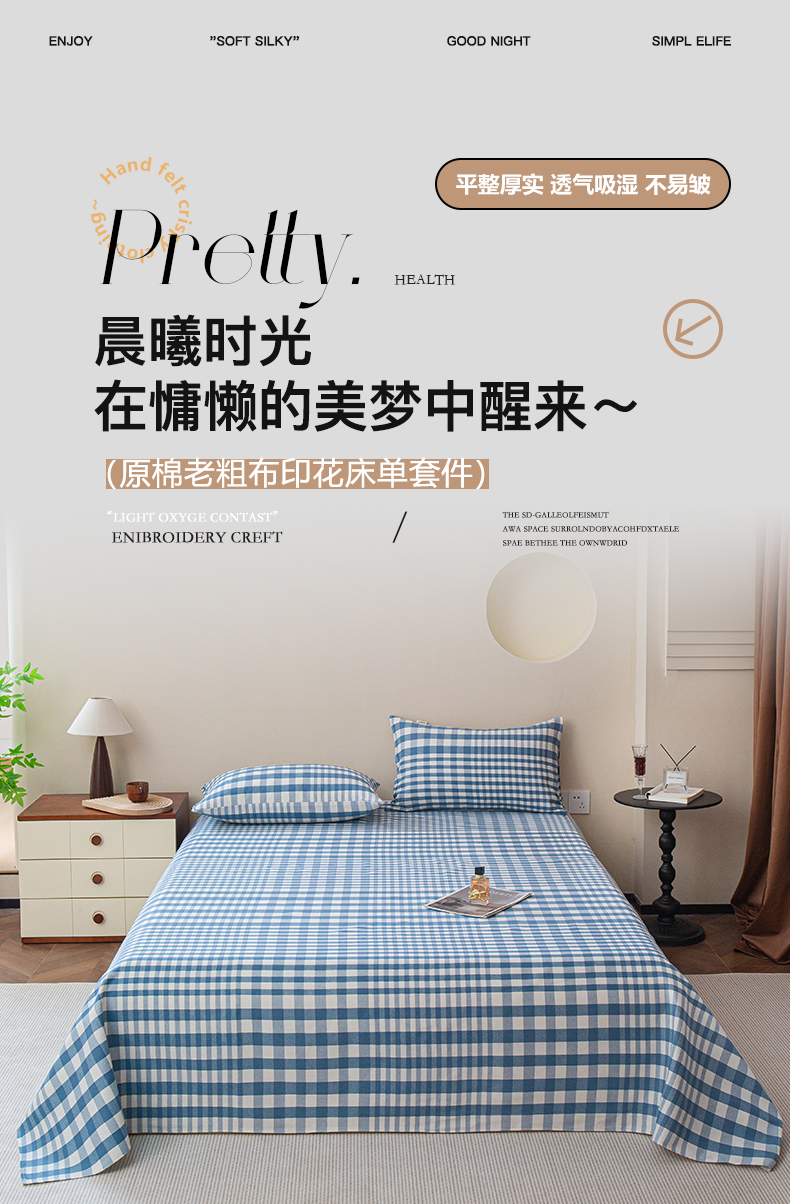 邵依家纺 2025新款原棉老粗布印花床单系列 时尚梦格-蓝