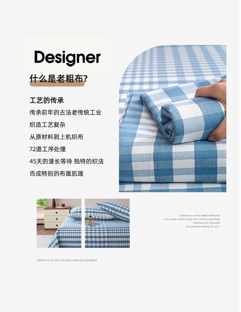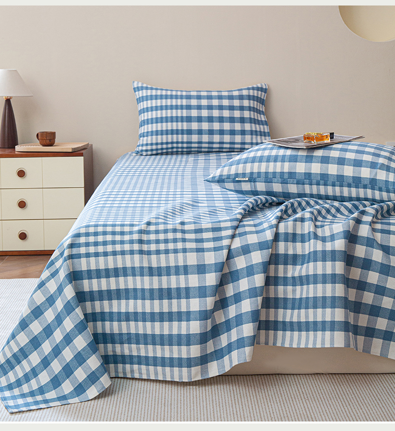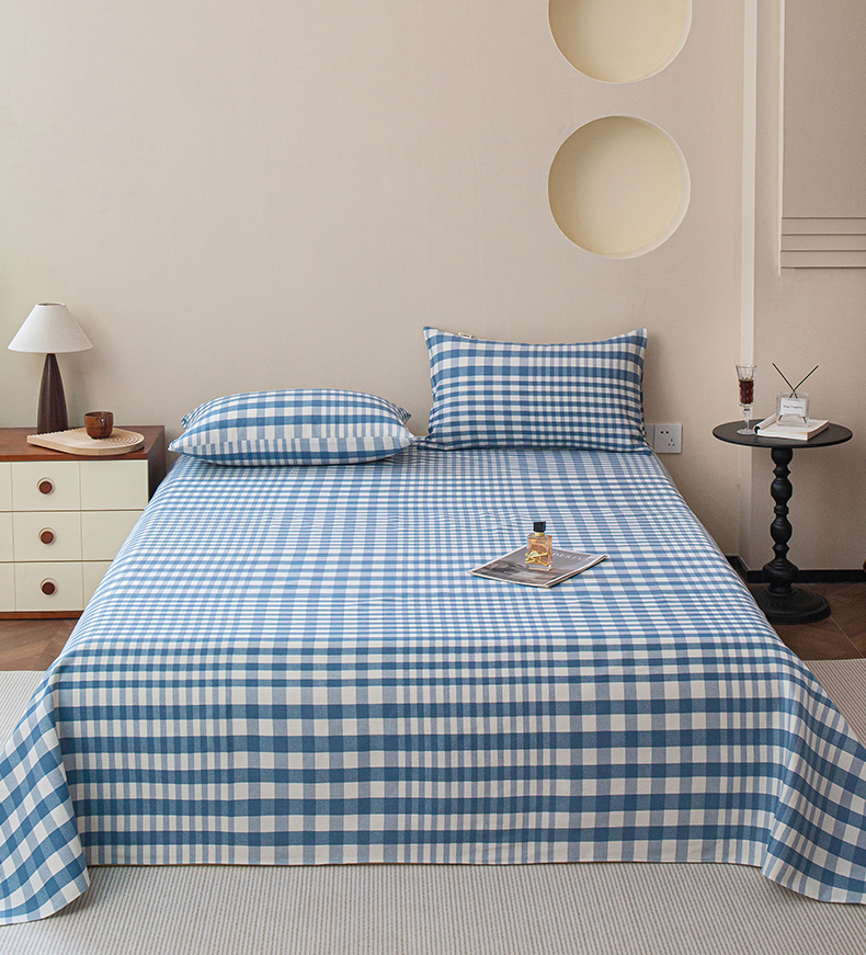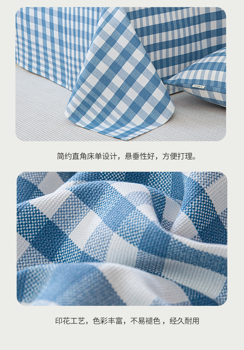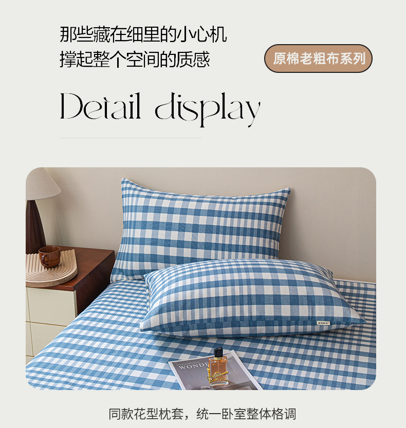 邵依家纺 2025新款原棉老粗布印花床单系列 时尚梦格-蓝