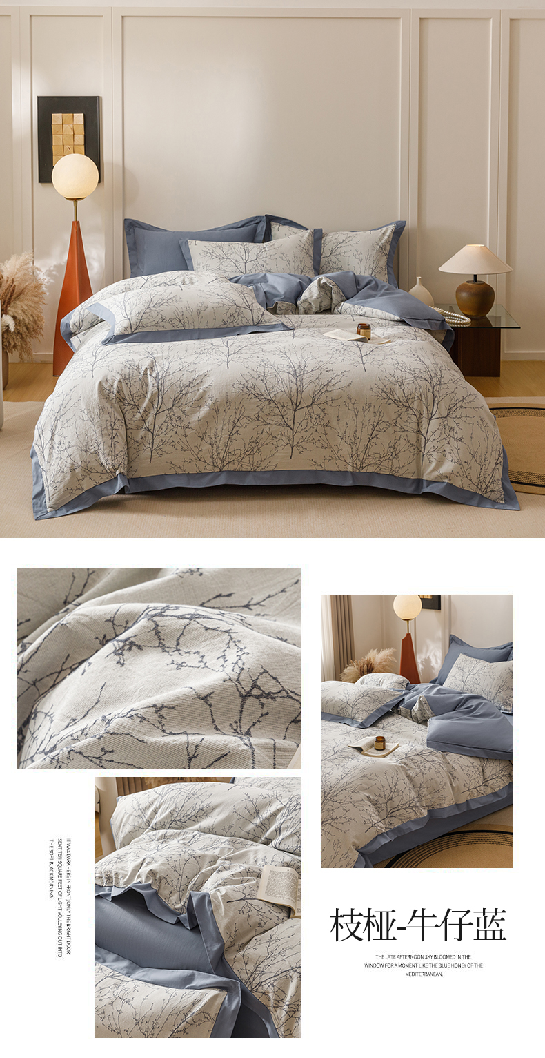 商品名称:(总)女子家纺 2025新款全棉纯棉宽边三层纱提花四件套