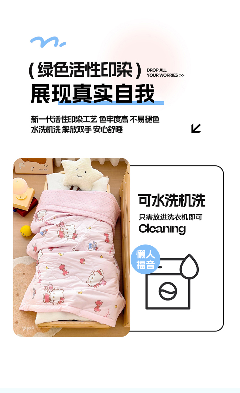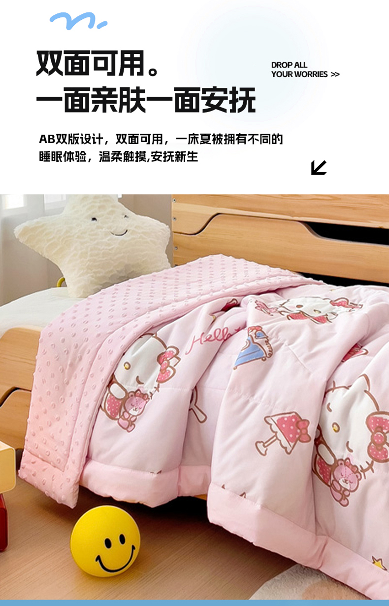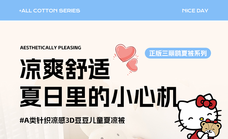 商品名称:御棉坊 2025新款A类三丽鸥凉感丝豆豆儿童夏被 晚安Kitty