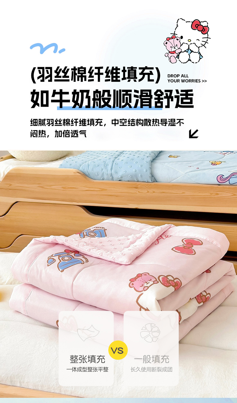 御棉坊 2025新款A类三丽鸥凉感丝豆豆儿童夏被 晚安Kitty