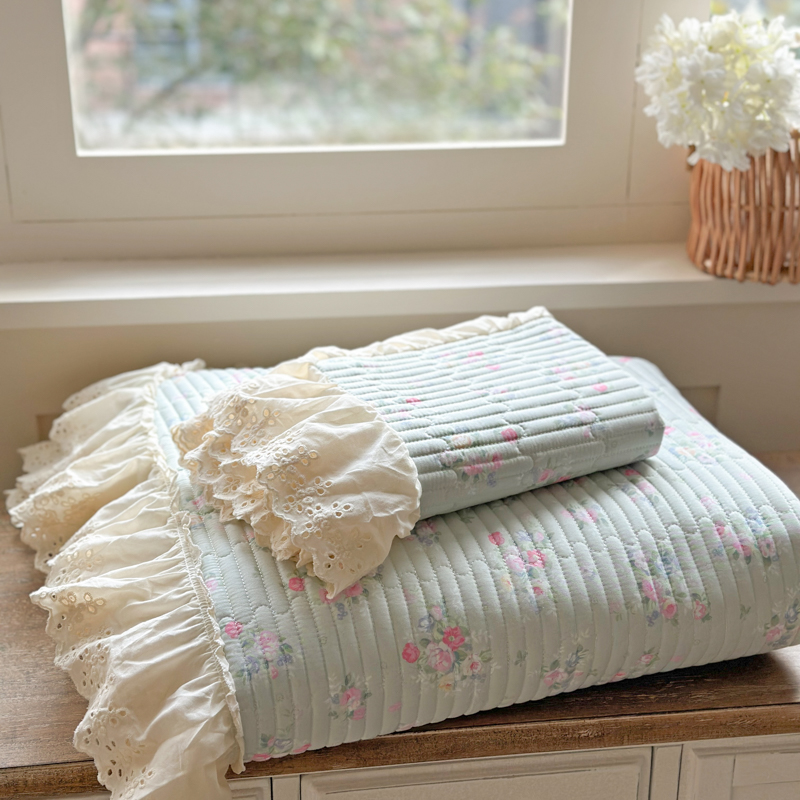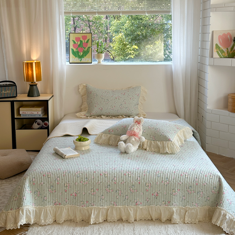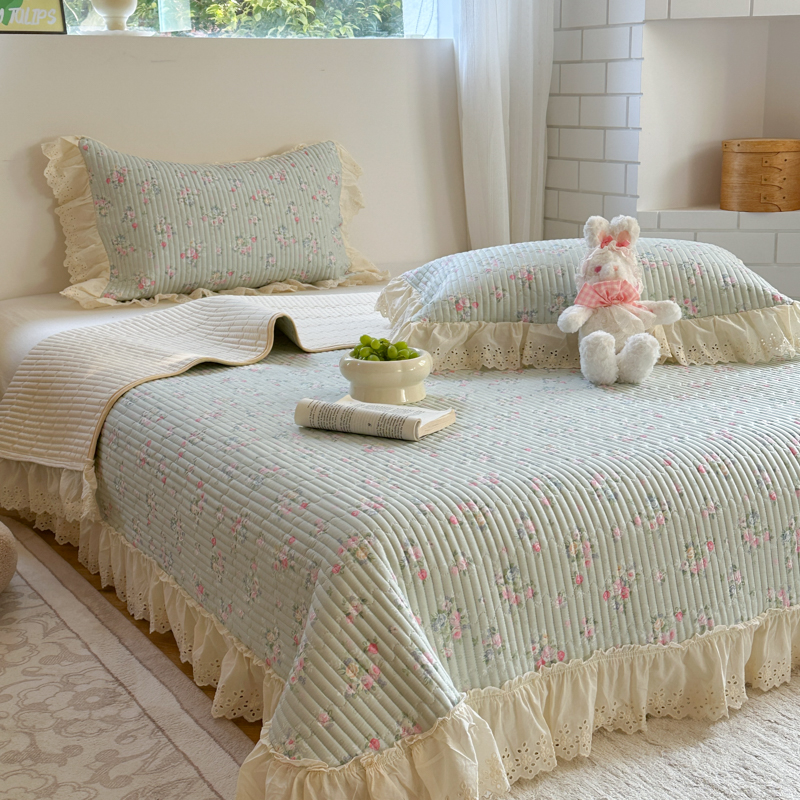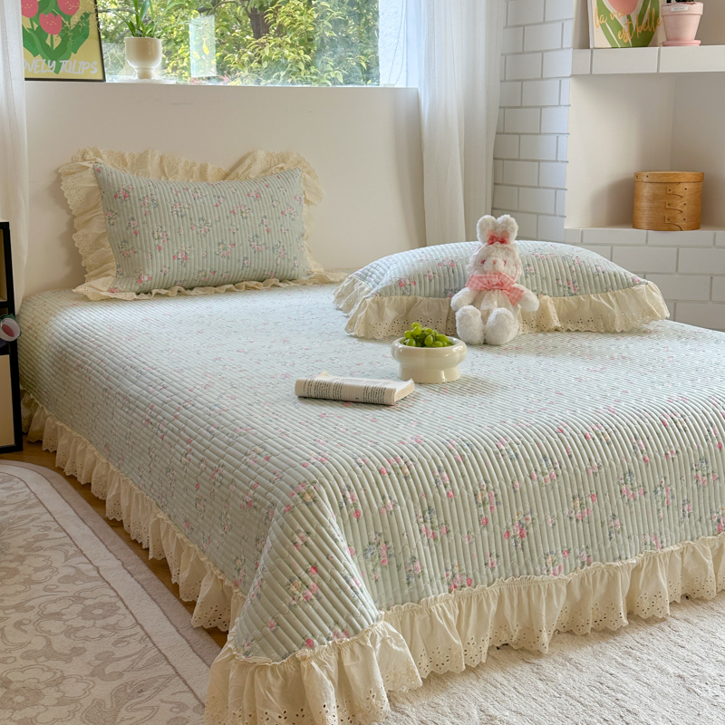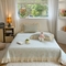 金丝鸟 2025全棉镂空白色花边款韩式床盖 夏满