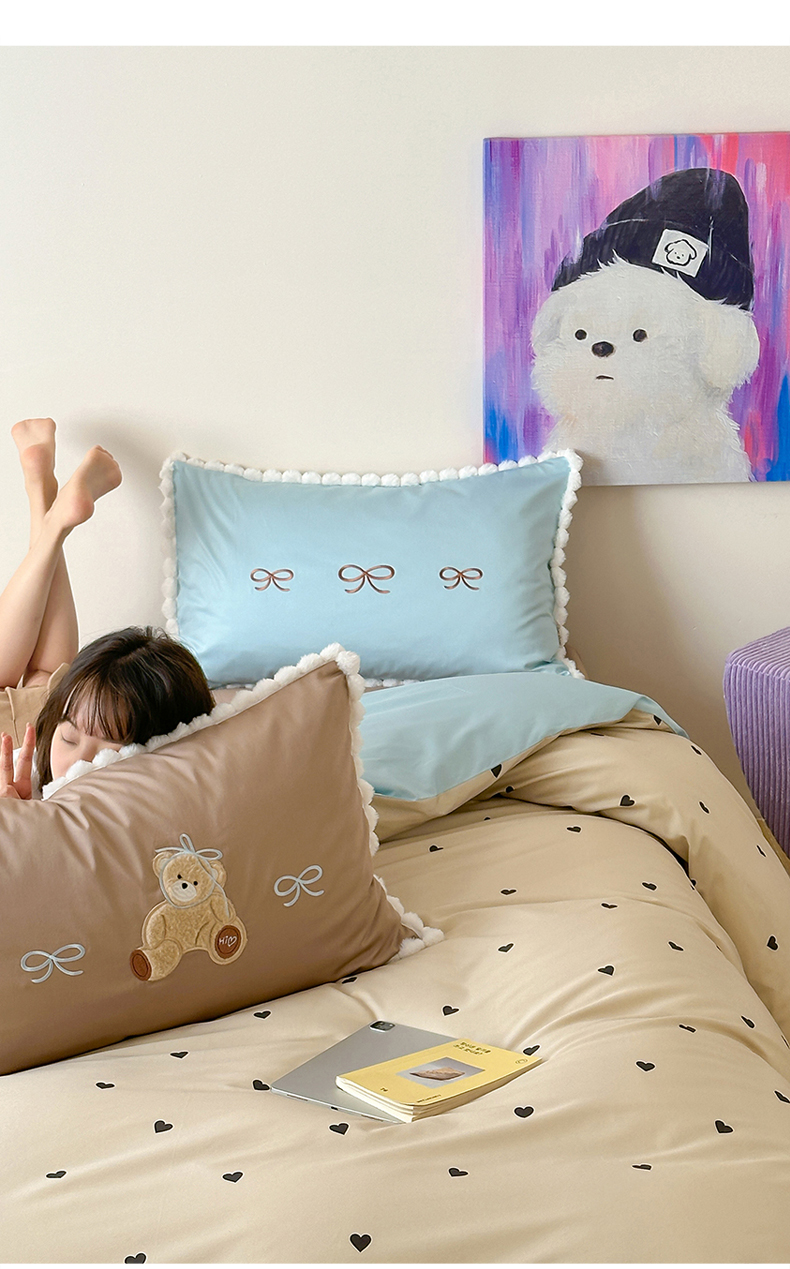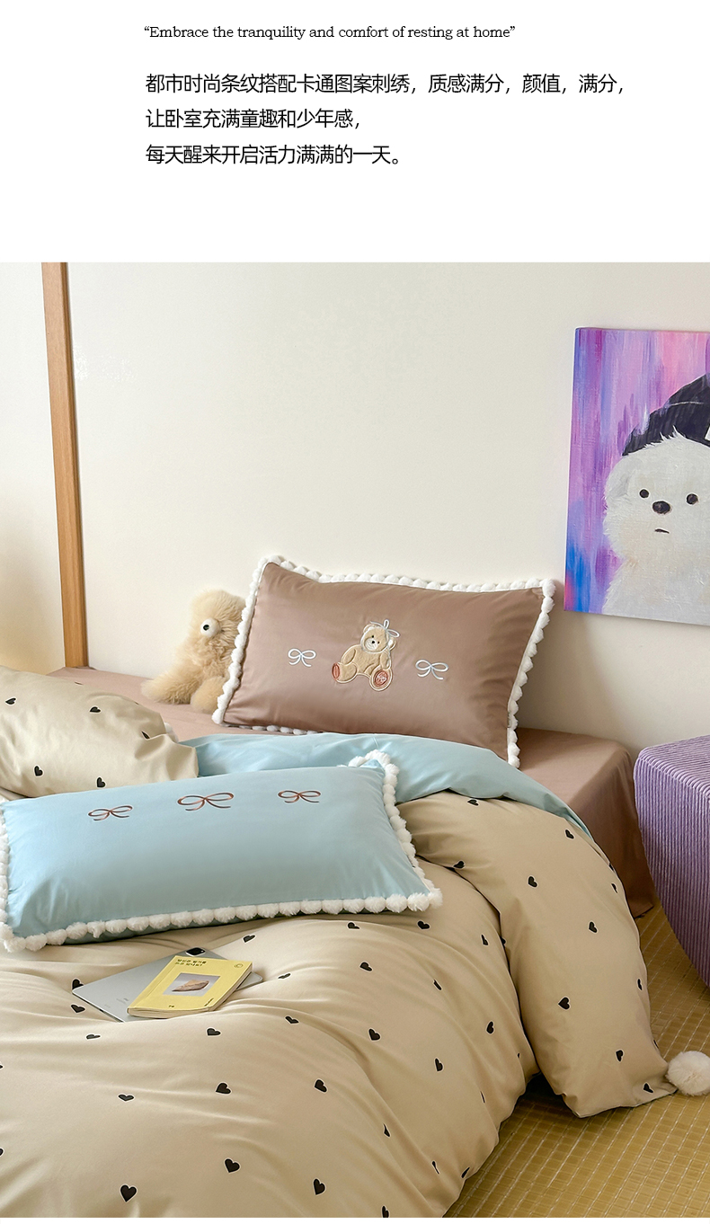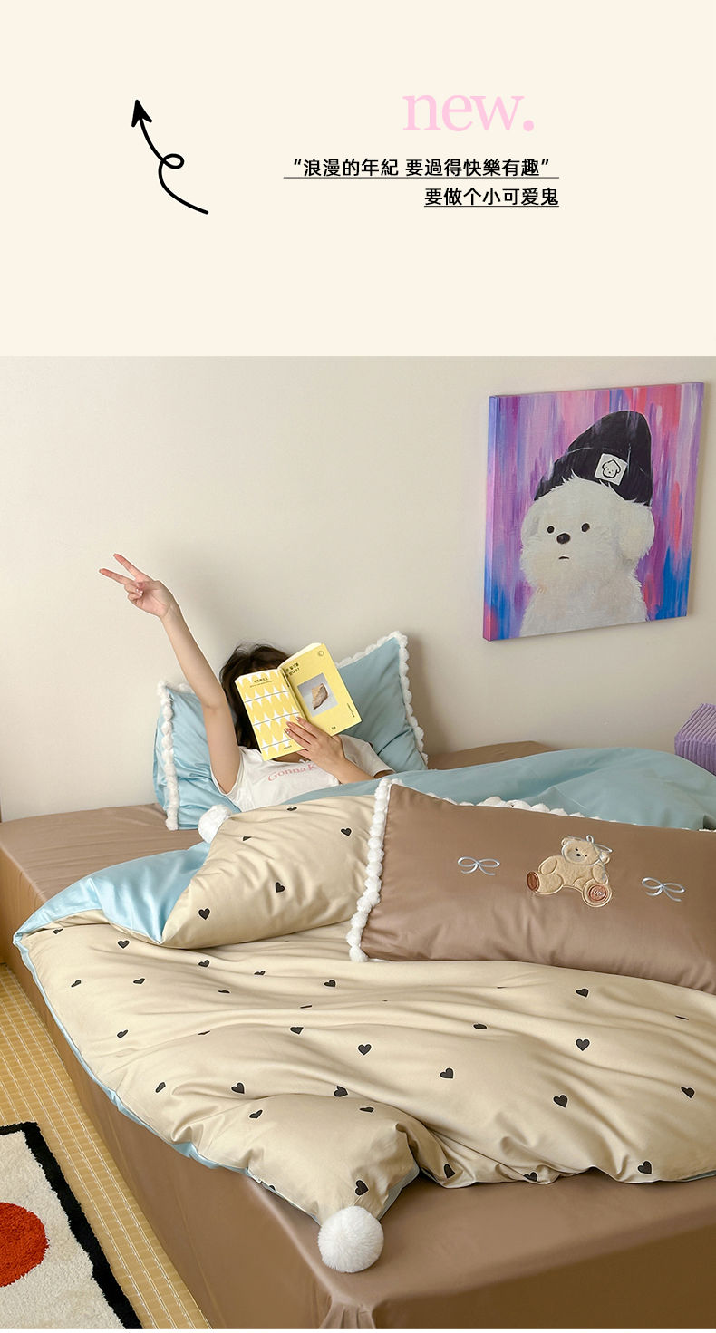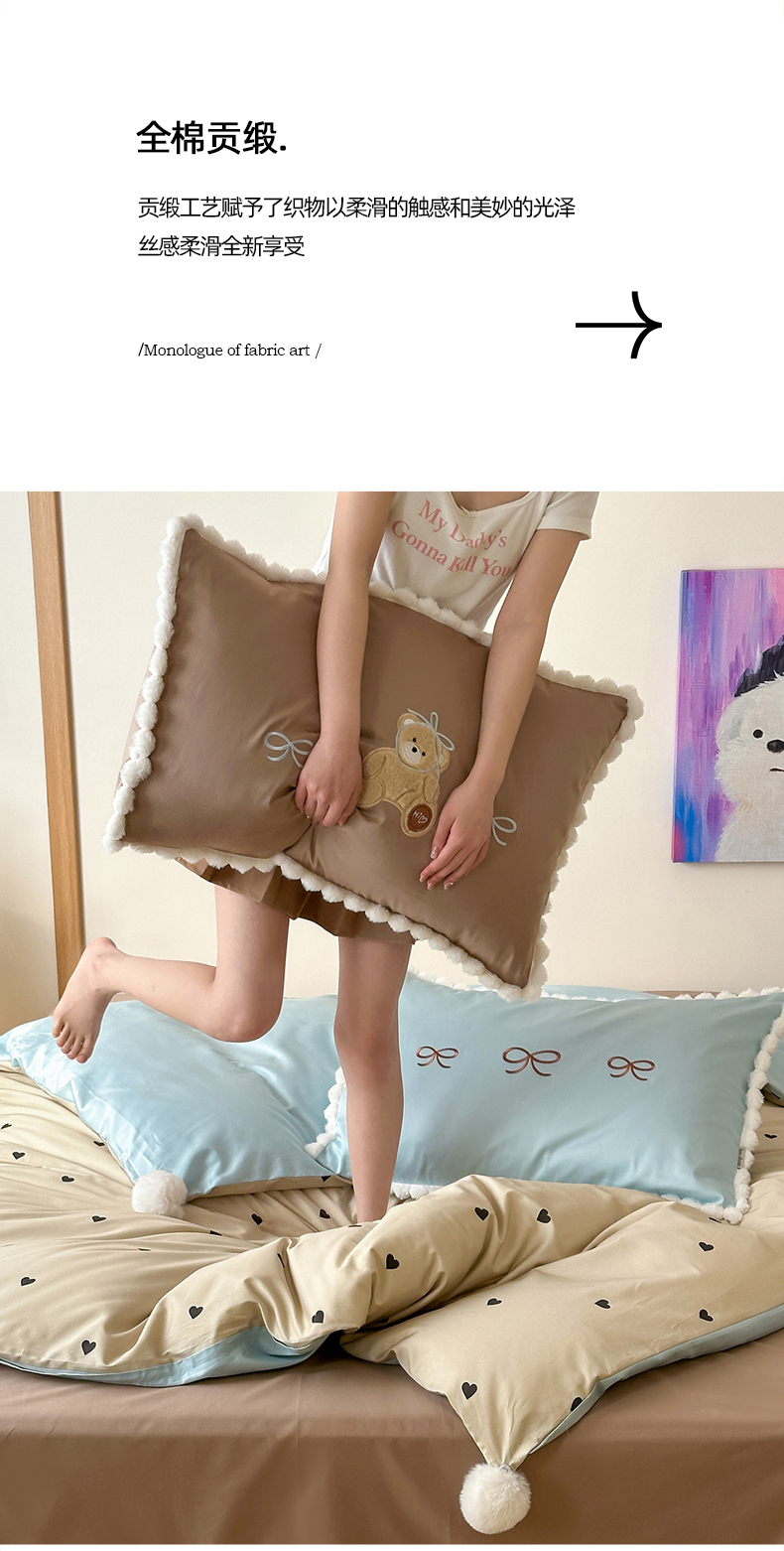 (总)桔子家纺 2026春夏新款100s全棉纯棉幸运系列四件套-场景二,幸运果(白色),幸运果(棕色),幸运小马