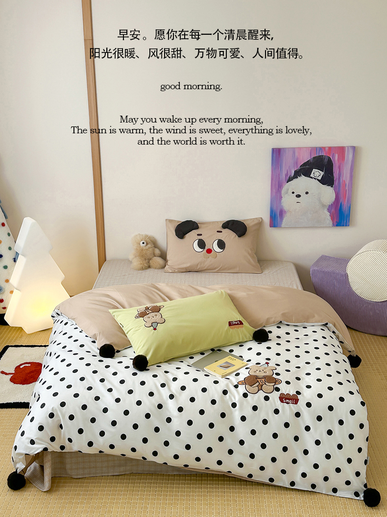 当前位置: 91家纺网 > 商品网购 > 床品套件 > 四件套 > 水洗棉四件套 > 桔子家纺 2025新款水洗棉蝴蝶结卡通系列 面包熊(棉)