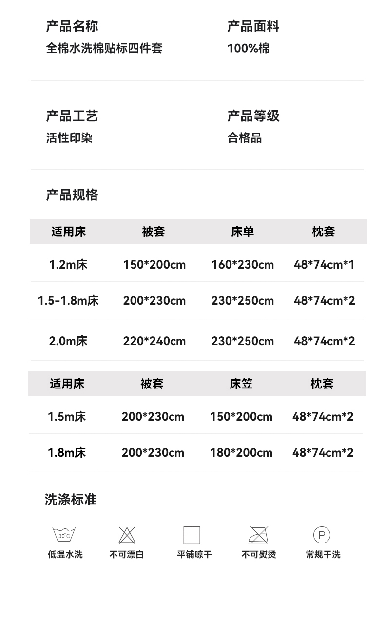 1.5m床笠款四件套 | ¥110.00 |