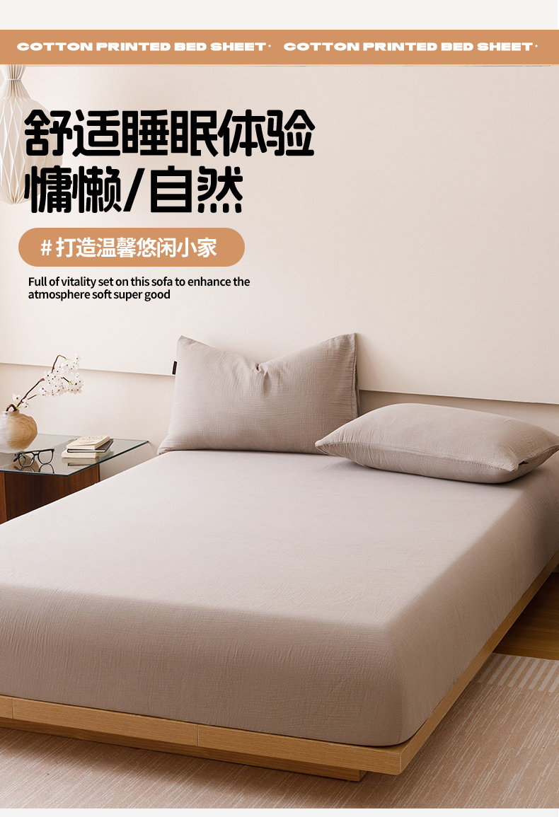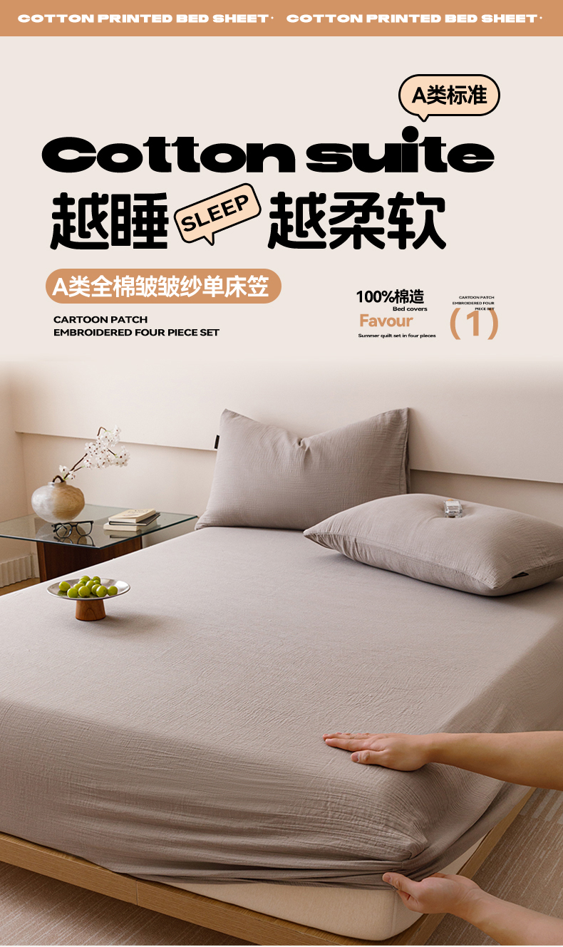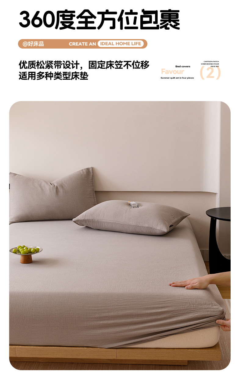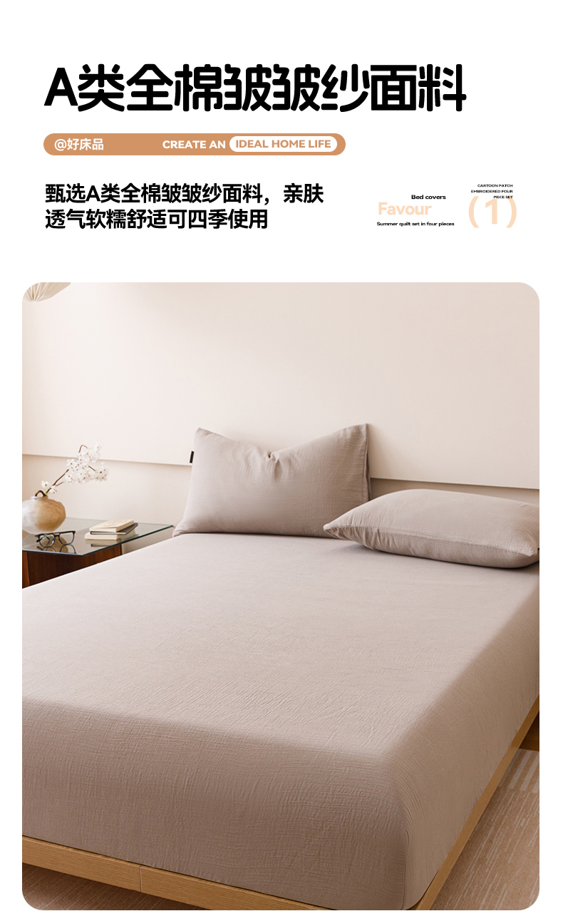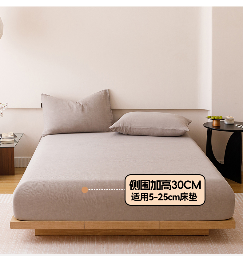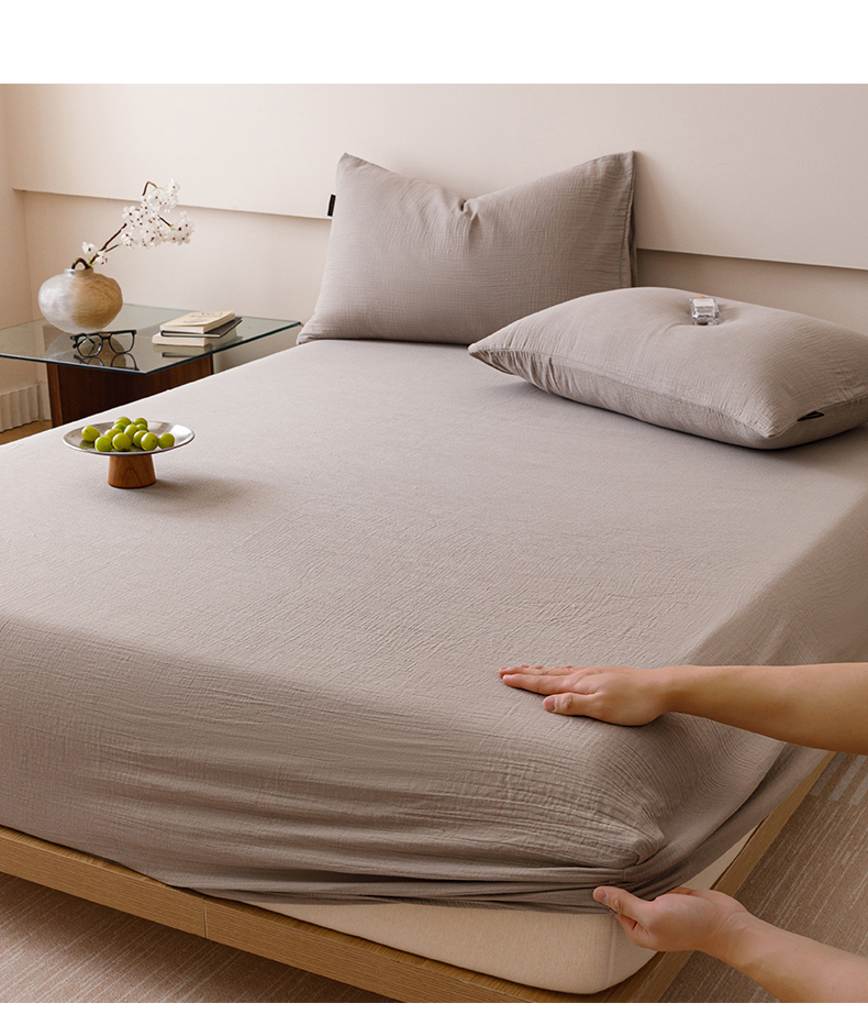 趣色家纺 2025新款全棉皱皱纱单床笠 绅士灰
