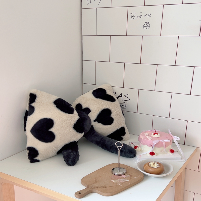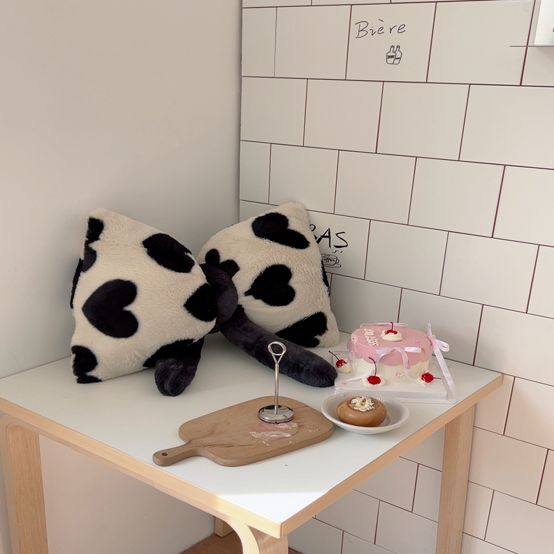 桔子家纺 2025新款蝴蝶结抱枕 黑爱心蝴蝶结