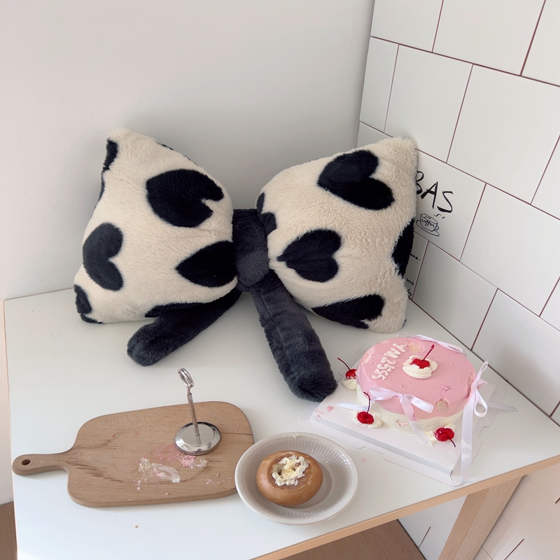 商品名称:桔子家纺 2025新款蝴蝶结抱枕 黑爱心蝴蝶结