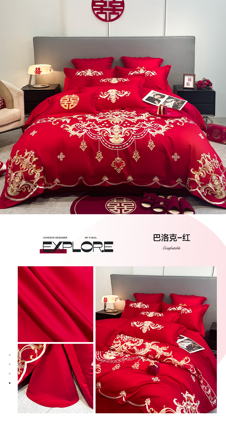 (总)欧乐蒂 2025新款欧式亲肤棉婚庆四件套,巴洛克-红,布拉格-红,锦绣佳缘-红,梦巴黎-红