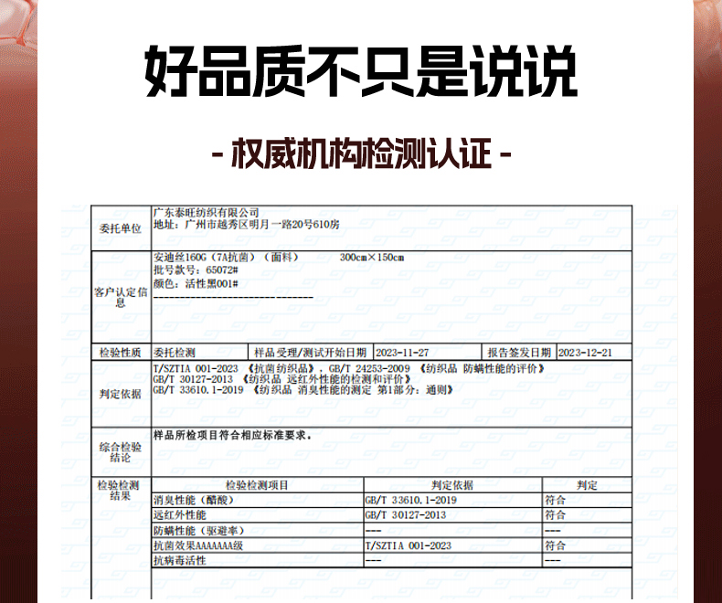 4、通州区市场监管局川姜分局友情提醒:近期针对抗静电,无静电,抗菌防螨,及有关舒适度,百分比的举报高发。为不影响商品正常销售,请各商家高度重视,自检自查及时整改,谢谢配合!