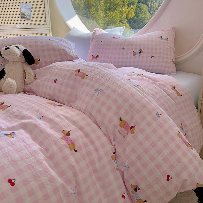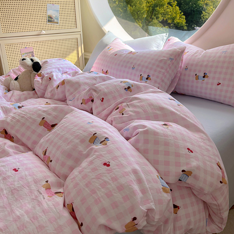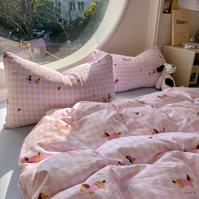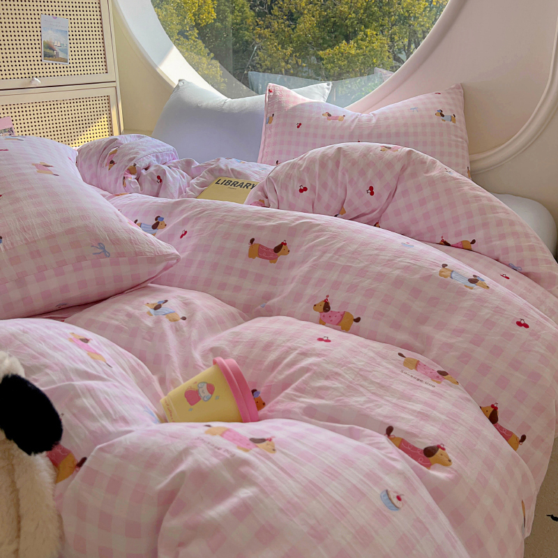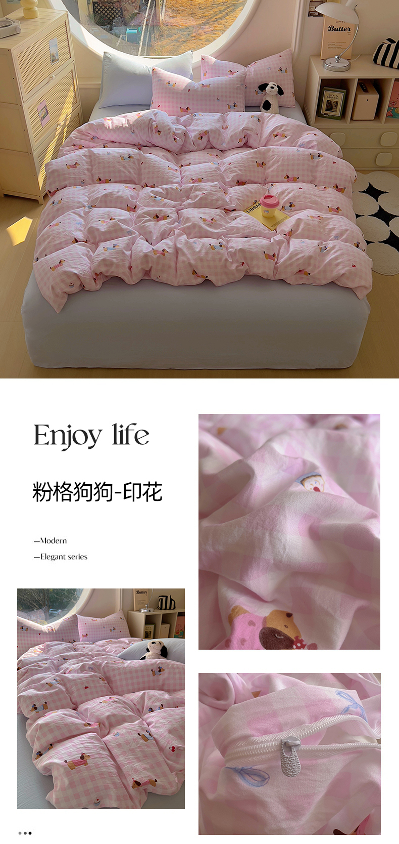当前位置: 91家纺网 > 商品网购 > 床品套件 > 四件套 > 化纤普通四件套 > 2025耀达新款舒适水洗棉印花四件套 粉格狗狗-印花