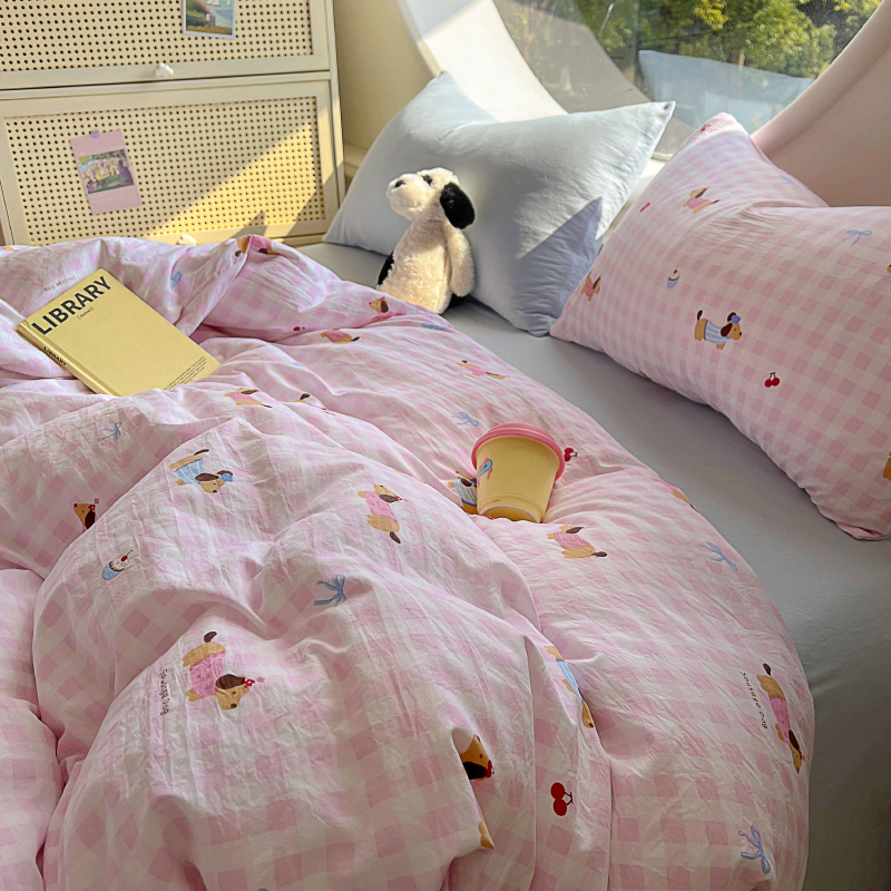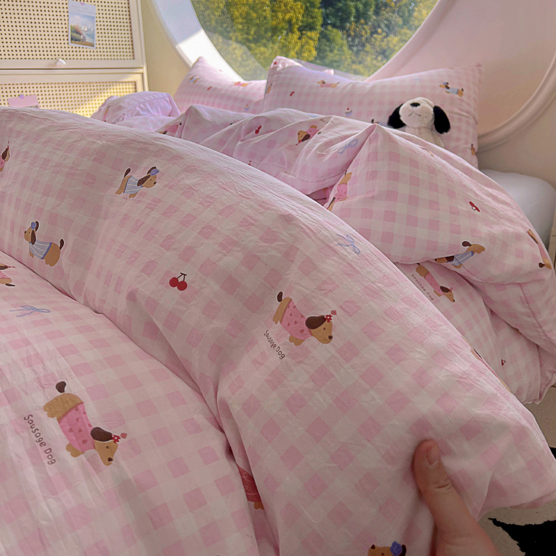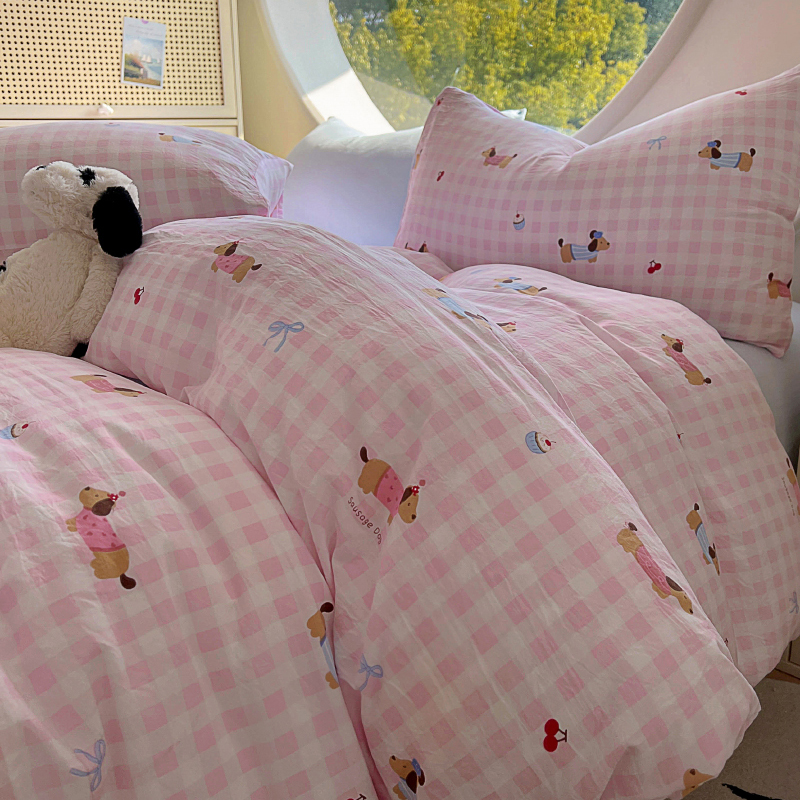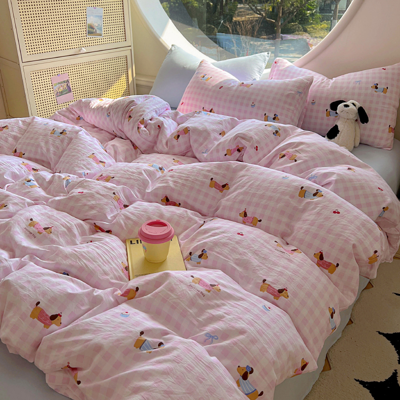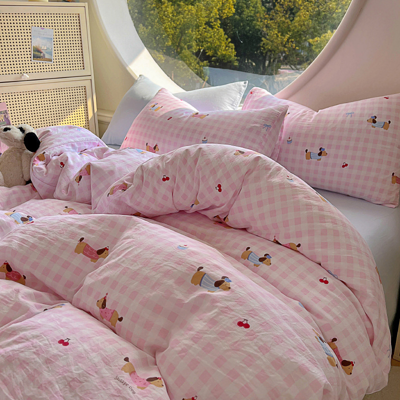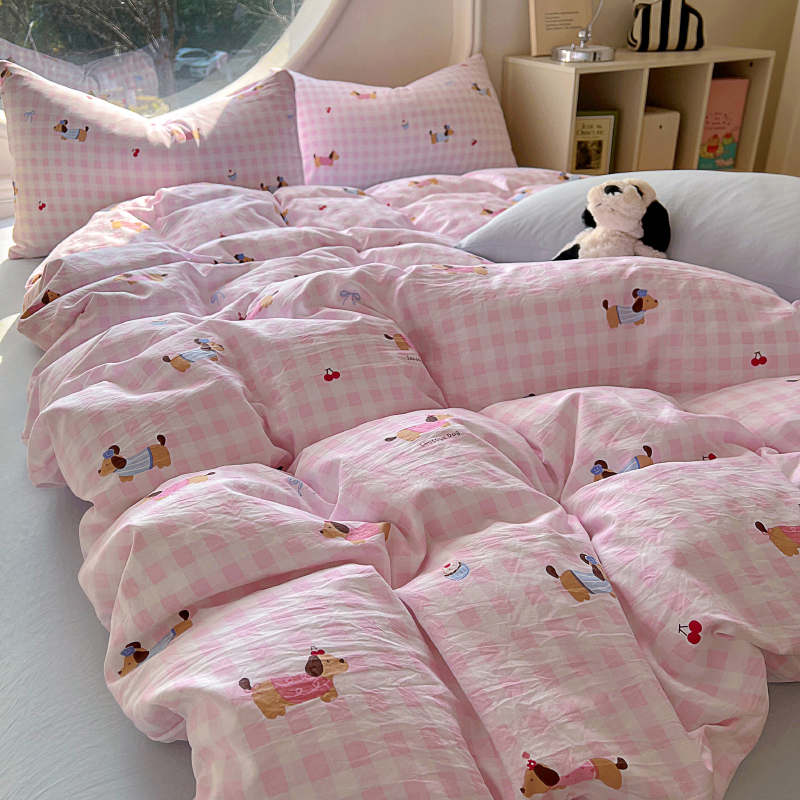 当前位置: 91家纺网 > 商品网购 > 床品套件 > 四件套 > 化纤普通四件套 > 2025耀达新款舒适水洗棉印花四件套 粉格狗狗-印花