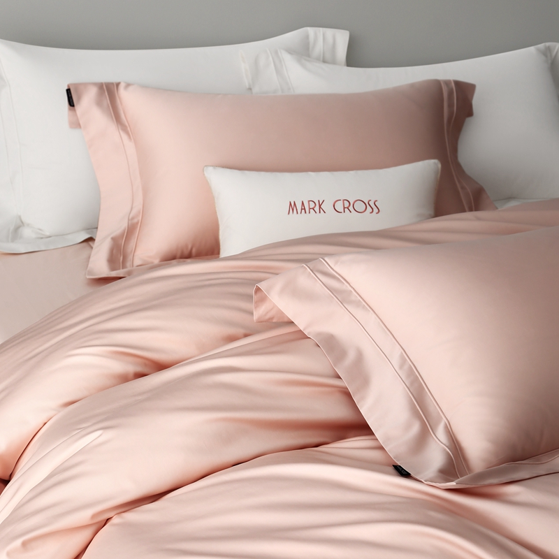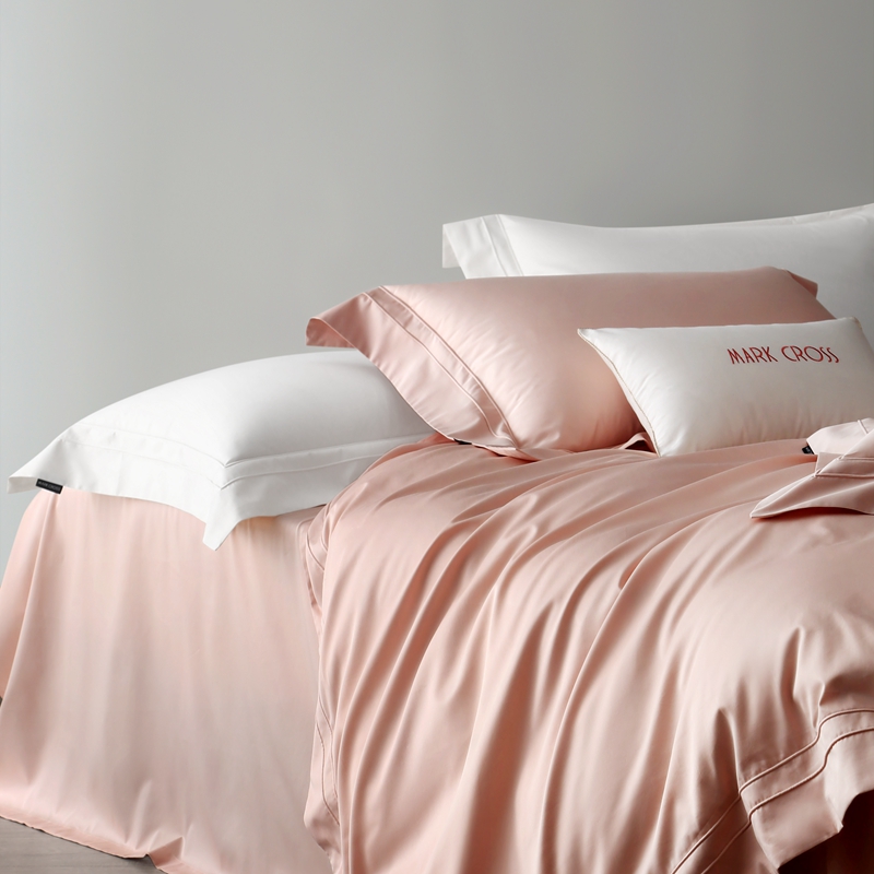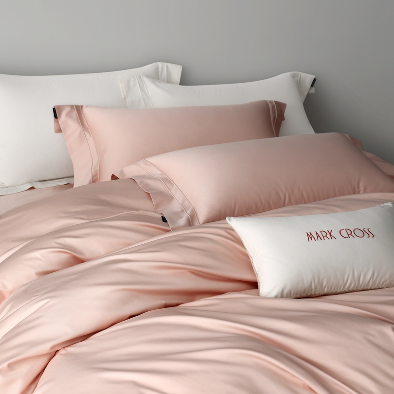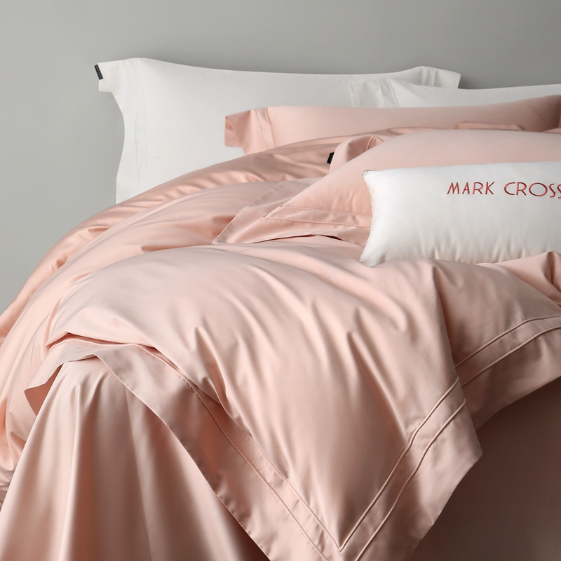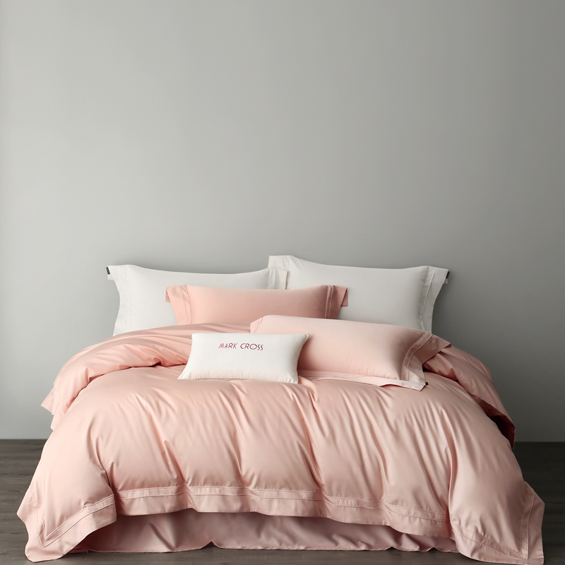 佳汐蓝家纺 2025新款极致简约质感埋绳全棉四件套-漫野观夏 报春粉