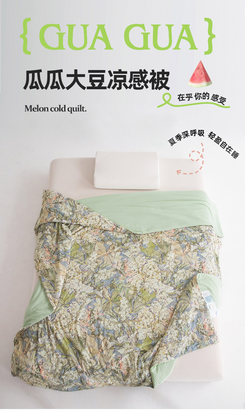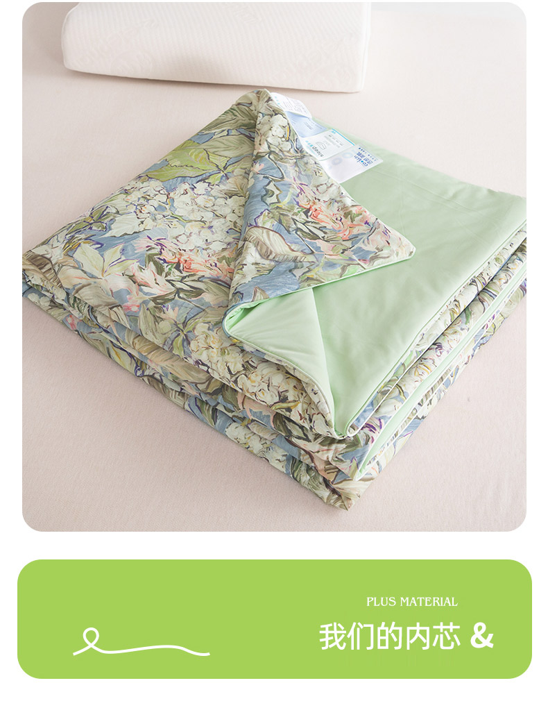 (总)睡棉坊2025新款数码印花高克重凉感丝夏凉被呱呱被10%大豆纤维填充带质检报告,梵高灰,国色东方,静若繁花,媚格绿,迷香紫,郁情粉