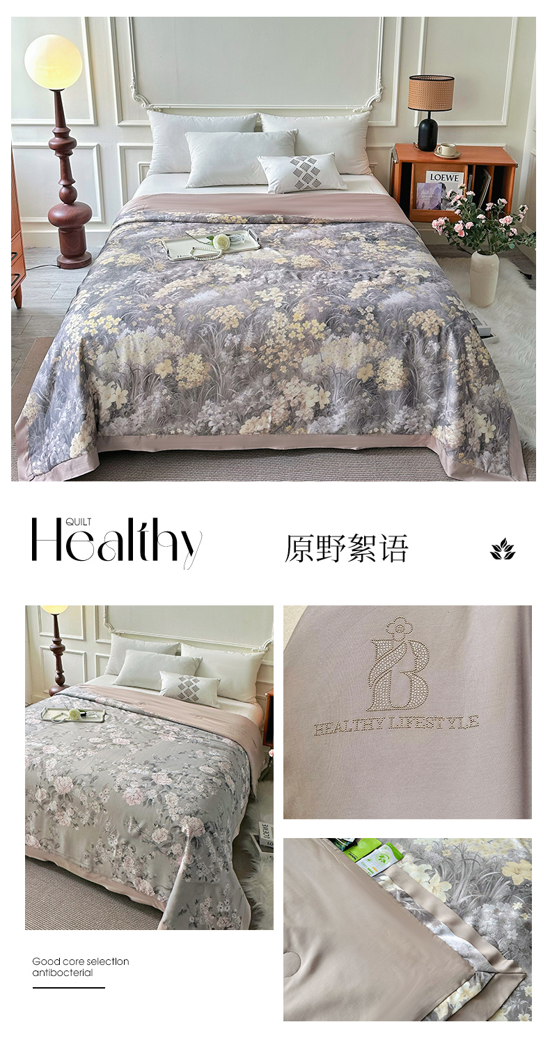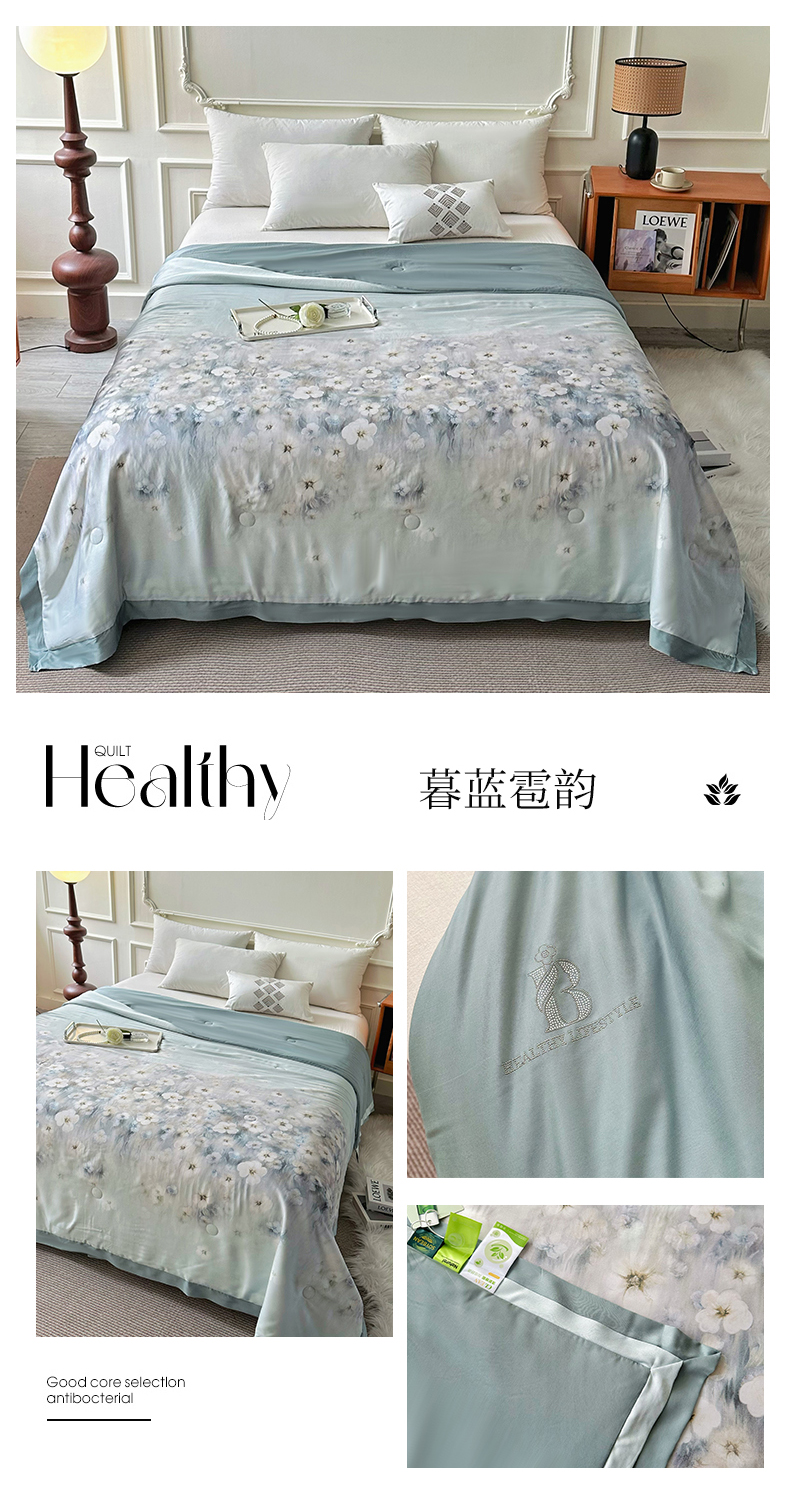 (总)博尔菲 2025新款天丝夏被 花间夏,兰色,灰色,粉色,绿色