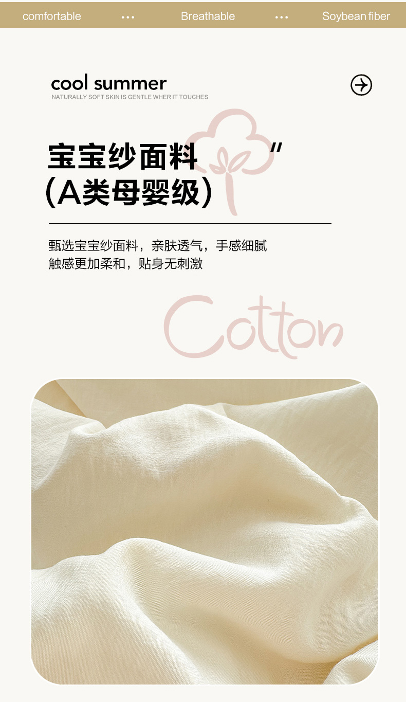 商品名称:佰亿莱 2025新款母婴级无印风超柔宝宝纱大豆夏凉被 大米色