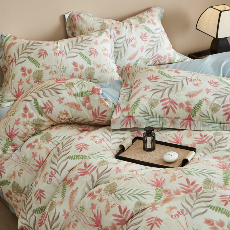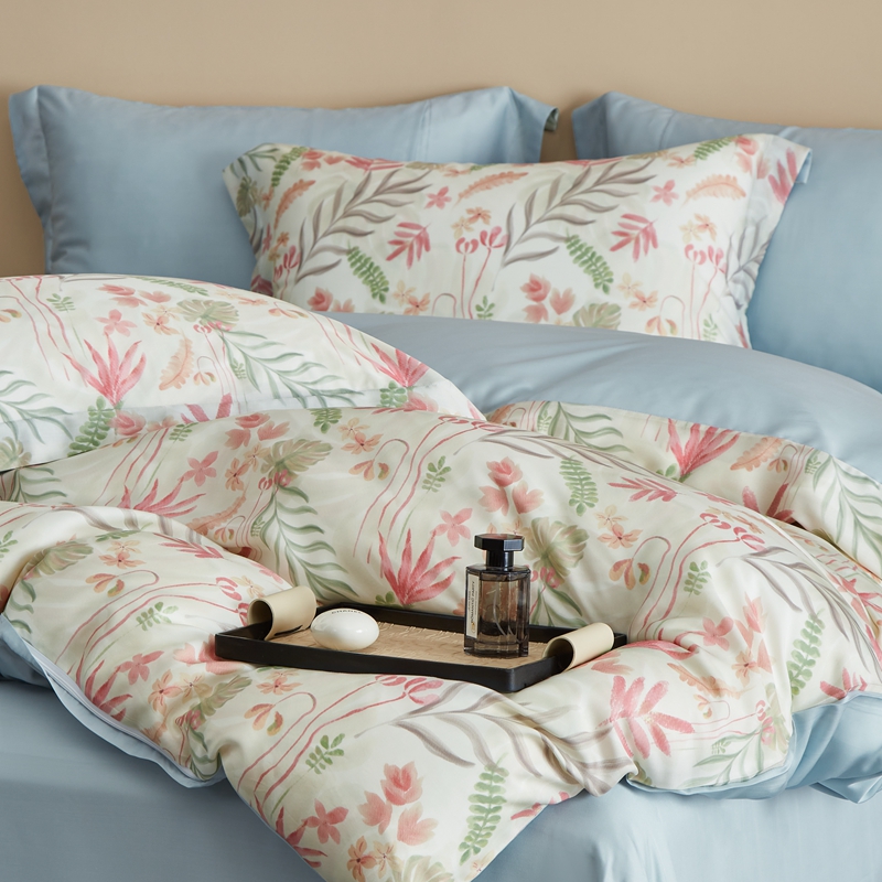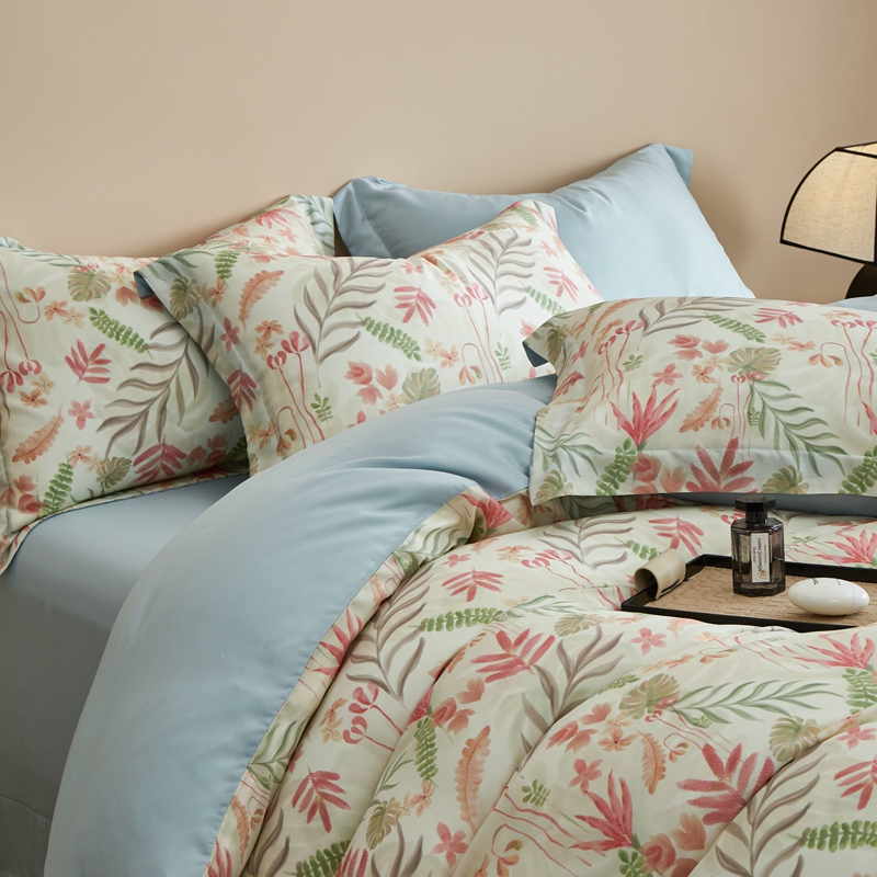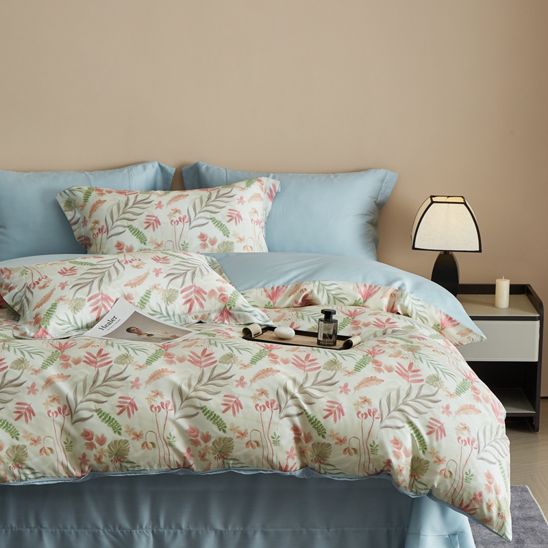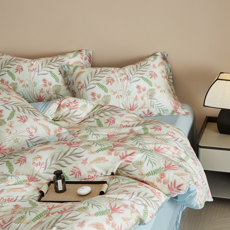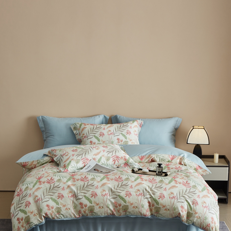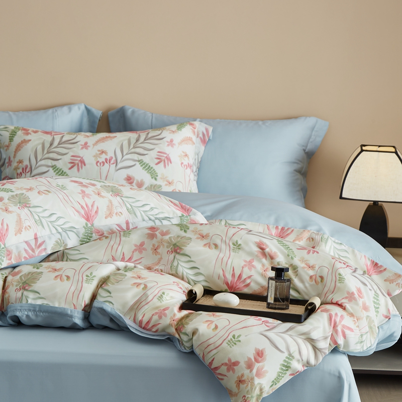 商品名称:顾家家居 2025新款莱塞尔兰精天丝印花四件套 素瑾