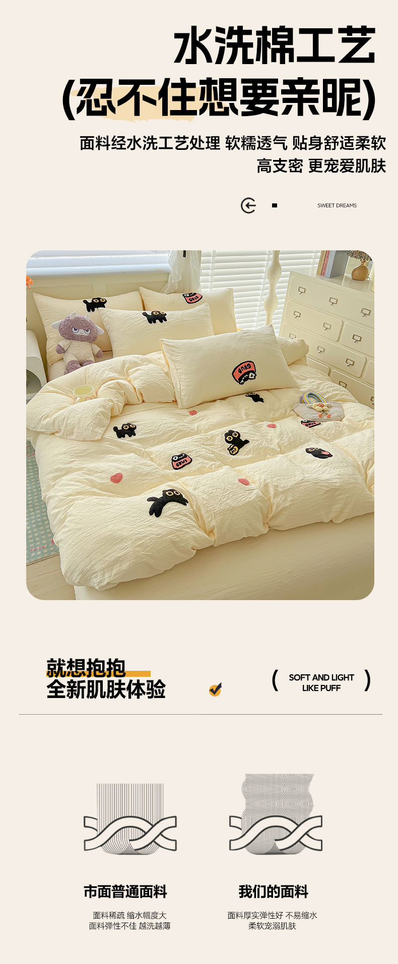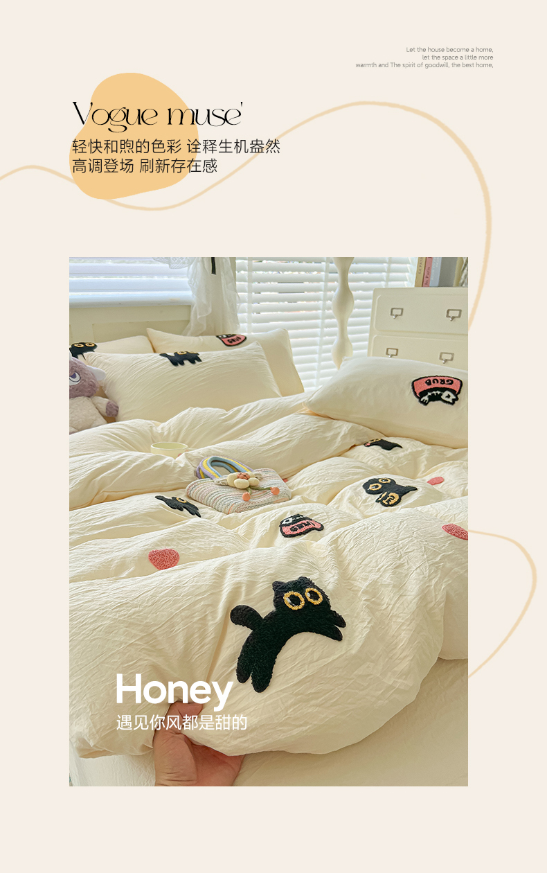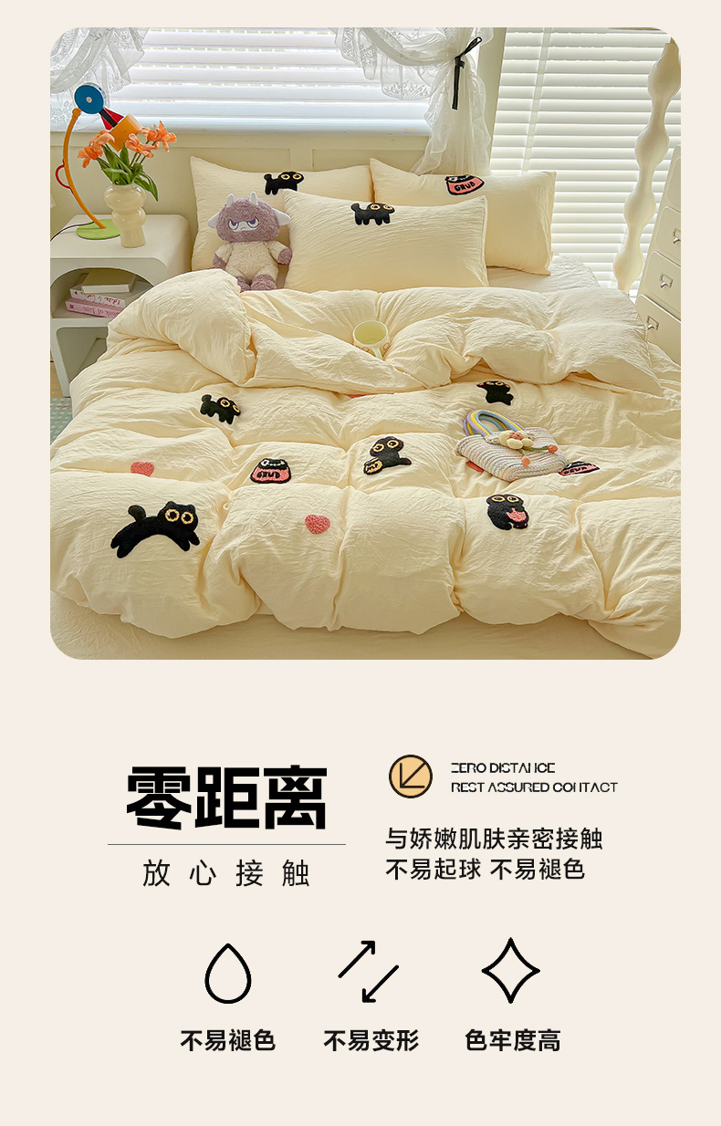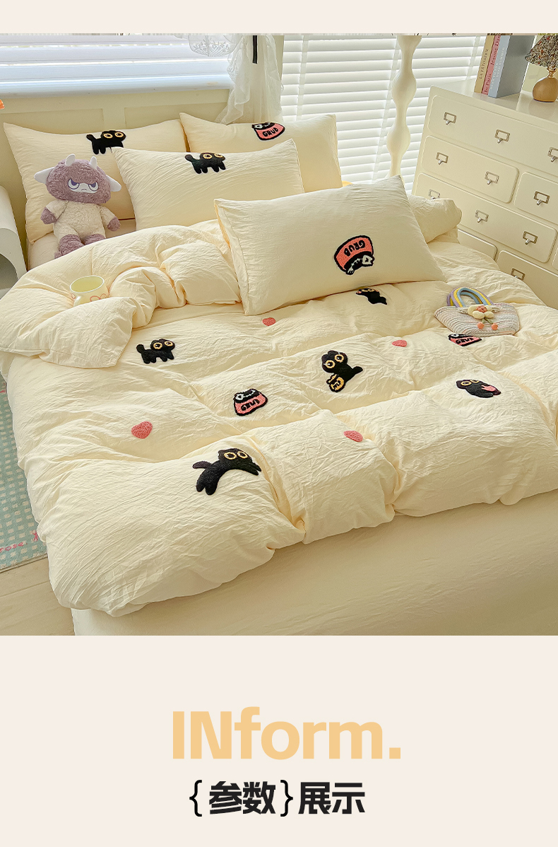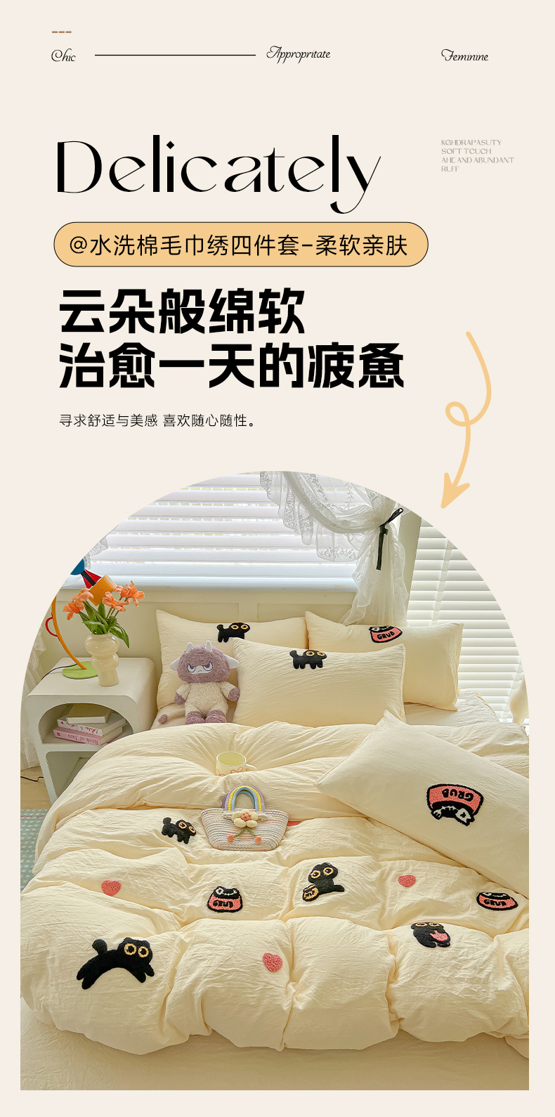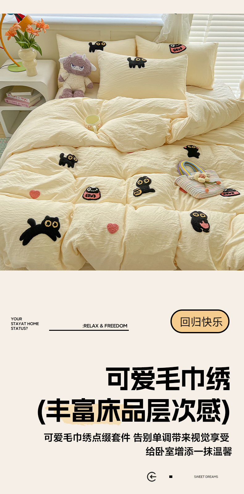 当前位置: 91家纺网 > 商品网购 > 床品套件 > 四件套 > 全棉普通四件套 > 韩巢家纺 2025款四季通用超柔水洗棉毛巾绣四件套-幸运猫系列 幸运猫奶黄