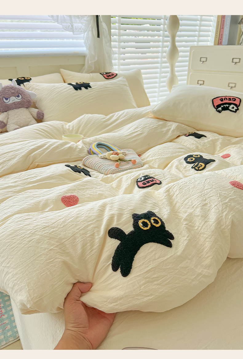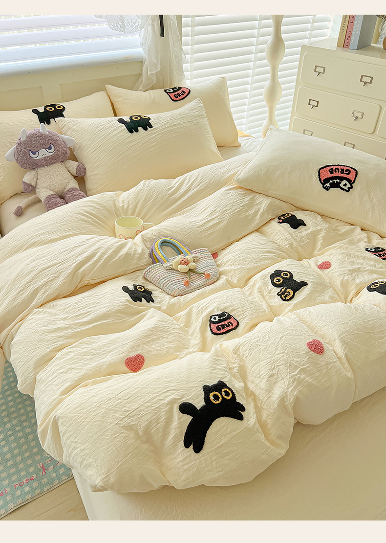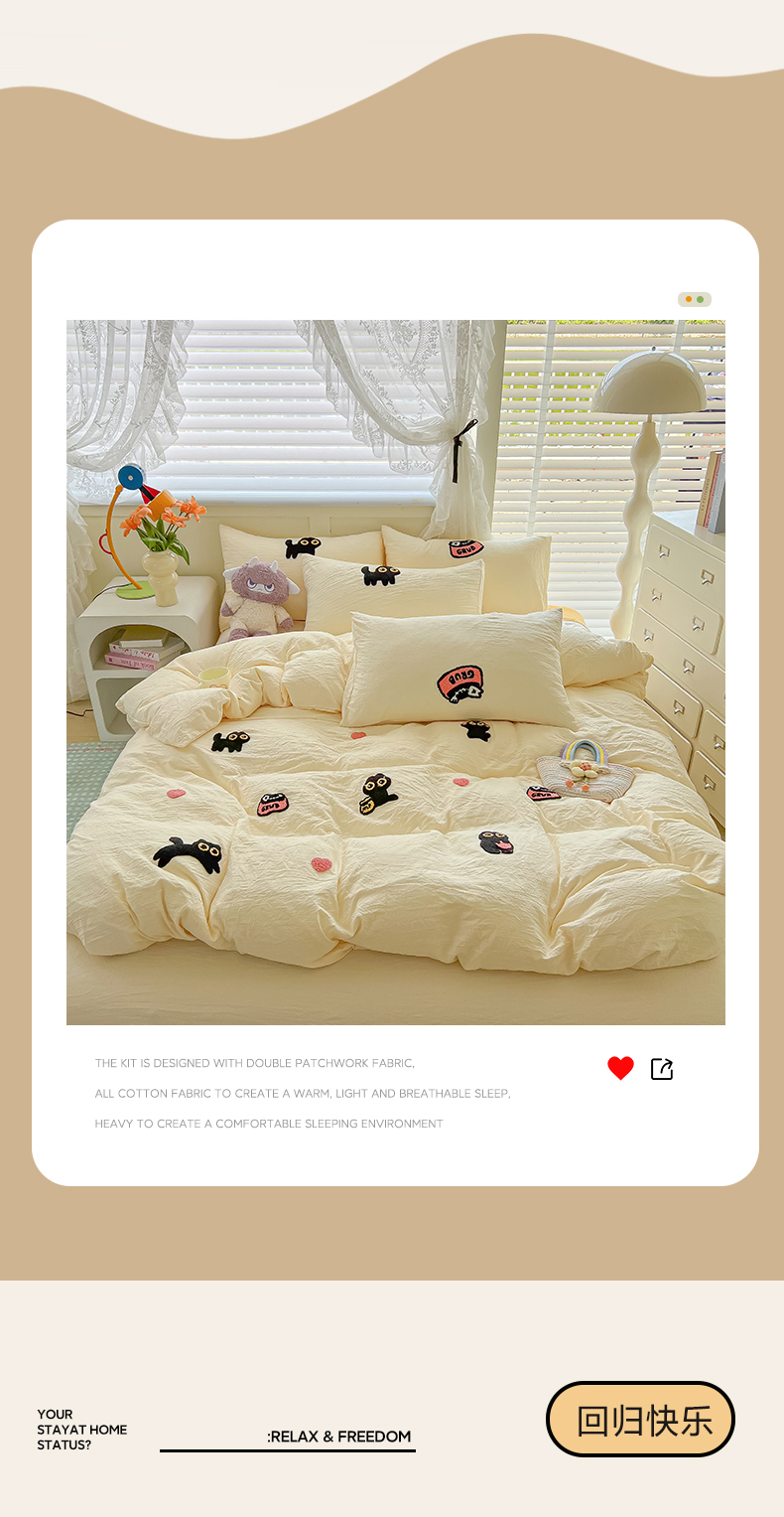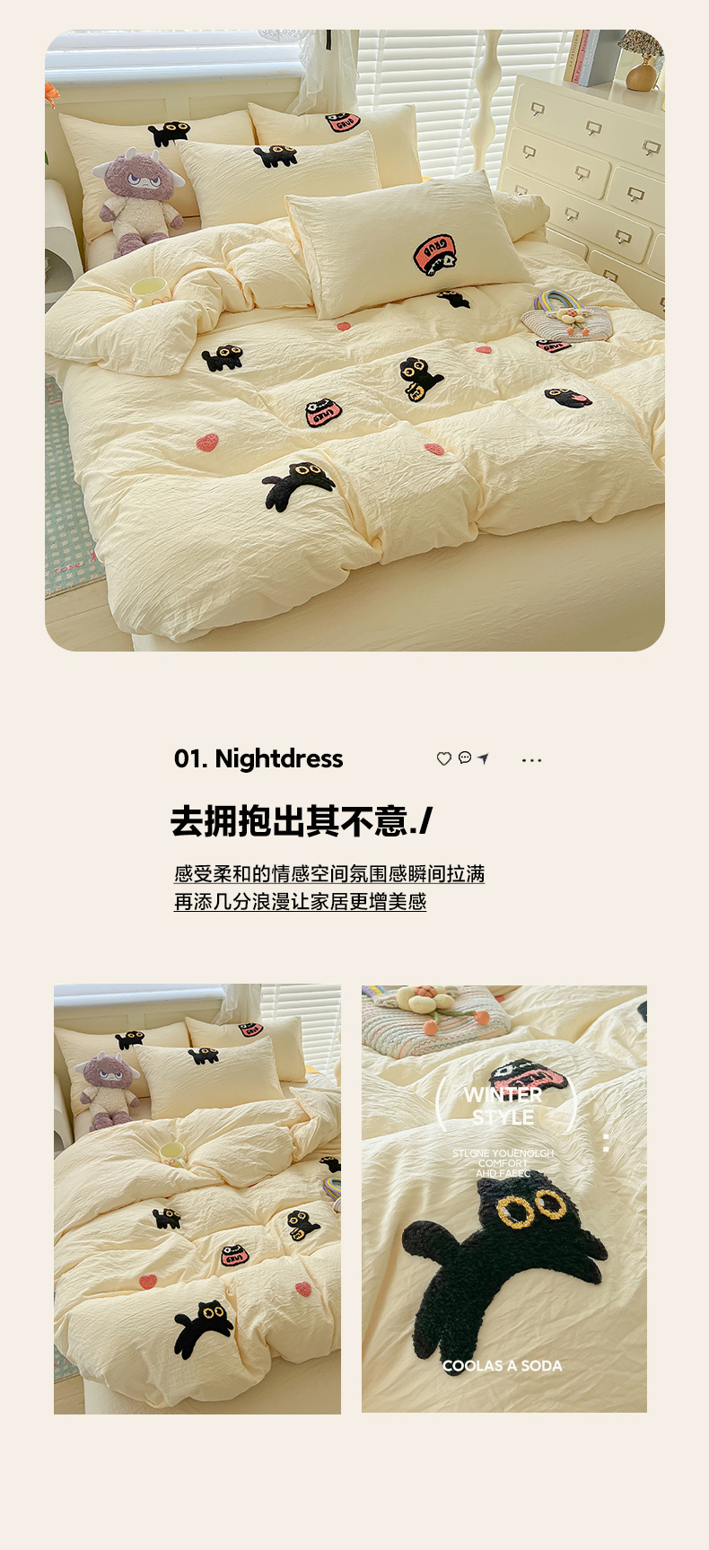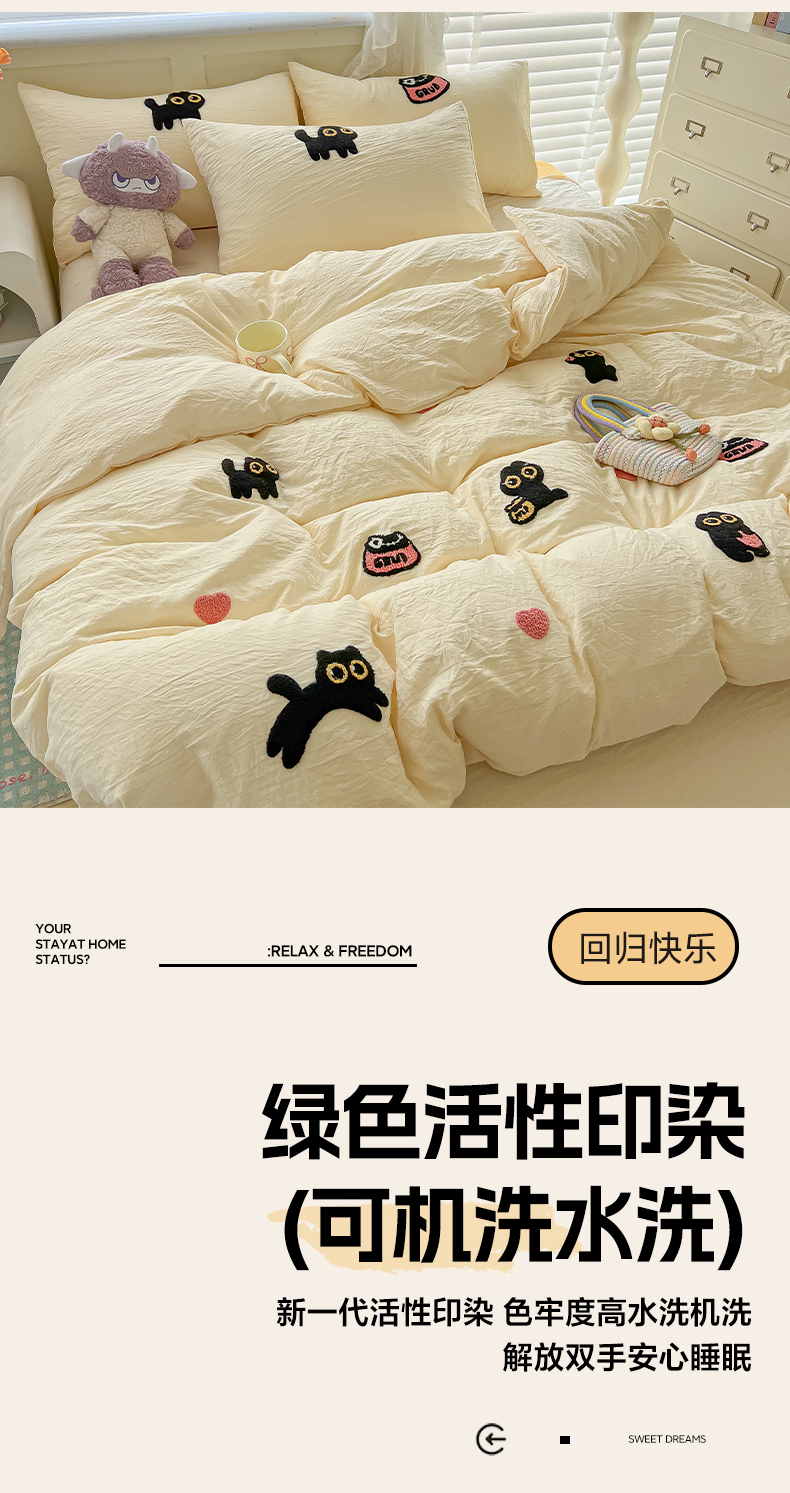当前位置: 91家纺网 > 商品网购 > 床品套件 > 四件套 > 全棉普通四件套 > 韩巢家纺 2025款四季通用超柔水洗棉毛巾绣四件套-幸运猫系列 幸运猫奶黄