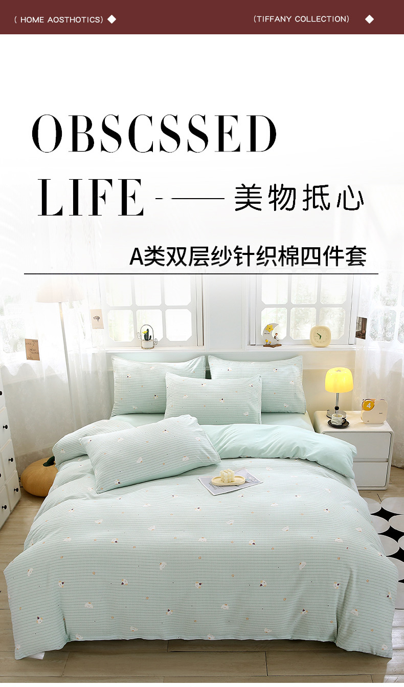 (总)织写 2025新款A类双层纱针织棉四件套床单四件套床单四件套小清新四件套,初享时光-咖,初享时光-蓝,春意盎然,动物乐园,狗狗家族,红色樱桃,蝴蝶结-咖,蝴蝶结-绿,花开烂漫,浪漫物语,琉璃,森林物语,宛然,乡间漫步,小草莓,小狗点点,小熊宝贝,紫色浪漫